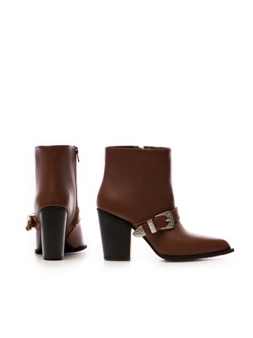Ciocate Ruby toc inalt, piele bizonata maro cu accesoriu argintiu