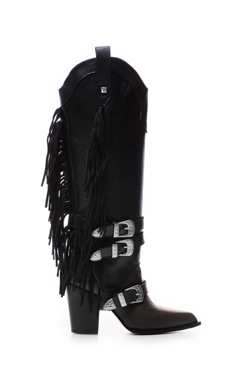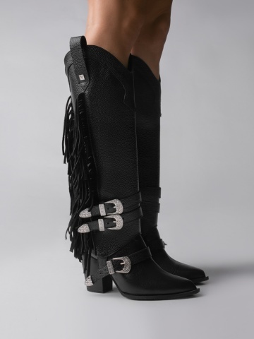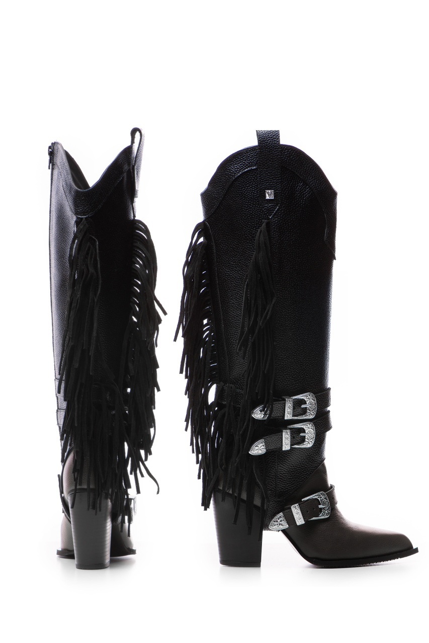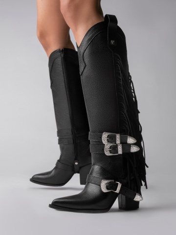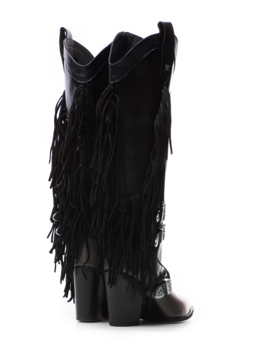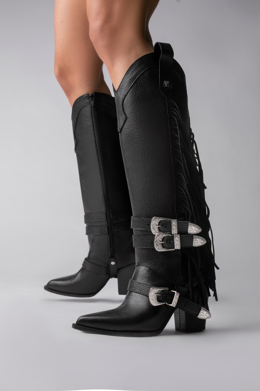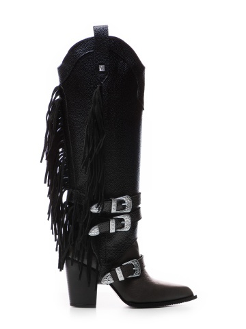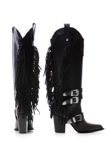 Ciocate Ruby toc inalt, piele bizonata neagra cu accesorii argintii si manson cu franjuri