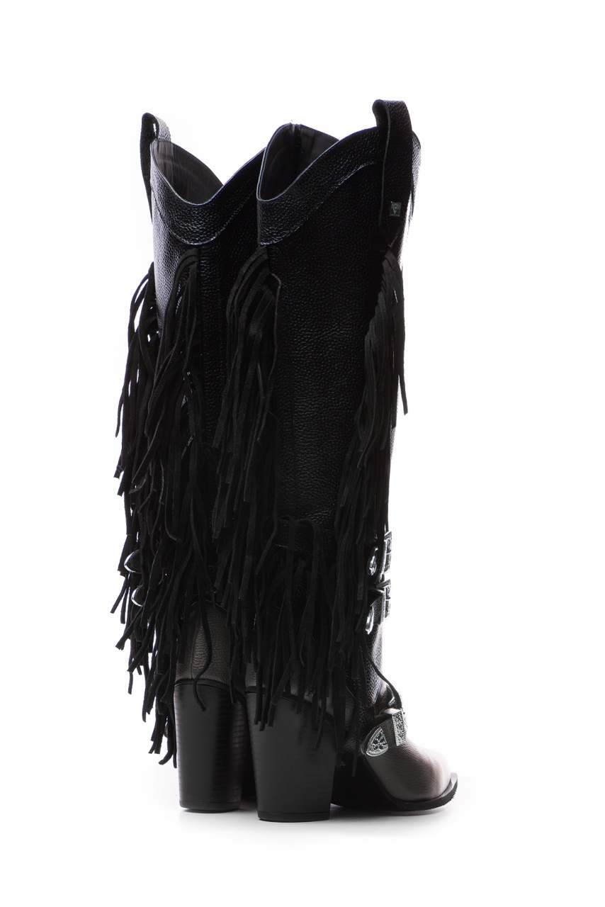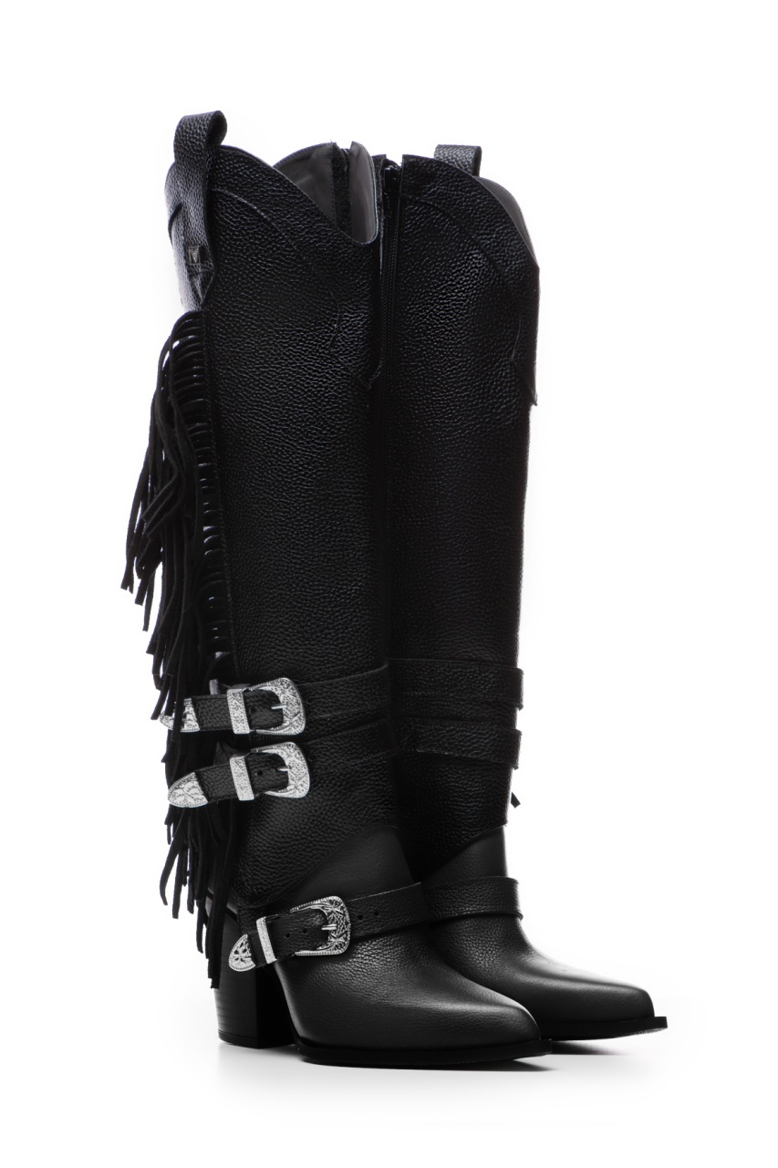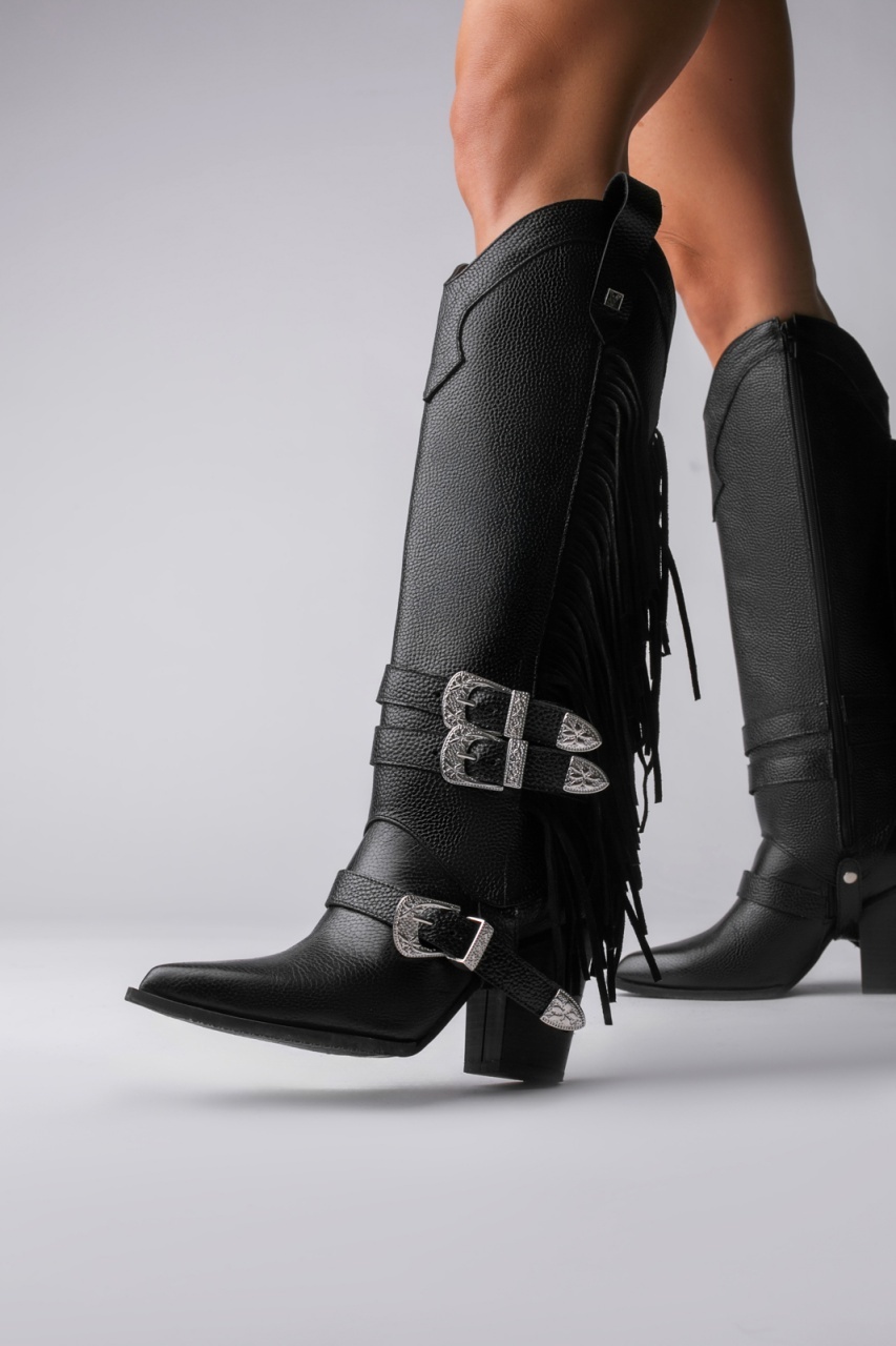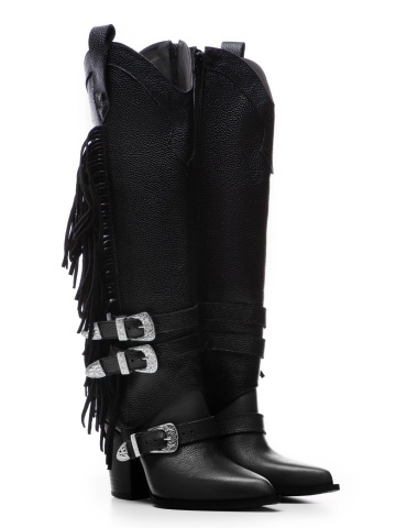 Ciocate Ruby toc inalt, piele bizonata neagra cu accesorii argintii si manson cu franjuri