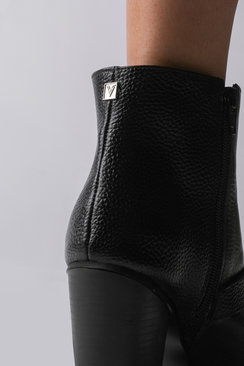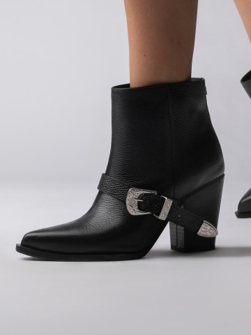 Descopera ciocatile Ruby cu toc inalt de 8 cm, realizate din piele bizonata neagra si piele intoarsa. Aceste ciocate sunt accessoriate cu detalii argintii elegante si franjuri, oferind un stil rafinat si indraznet. Materialul interior din piele naturala asigura confort pe tot parcursul zilei. Ideal pentru a adauga o nota de originalitate oricarei tinute!