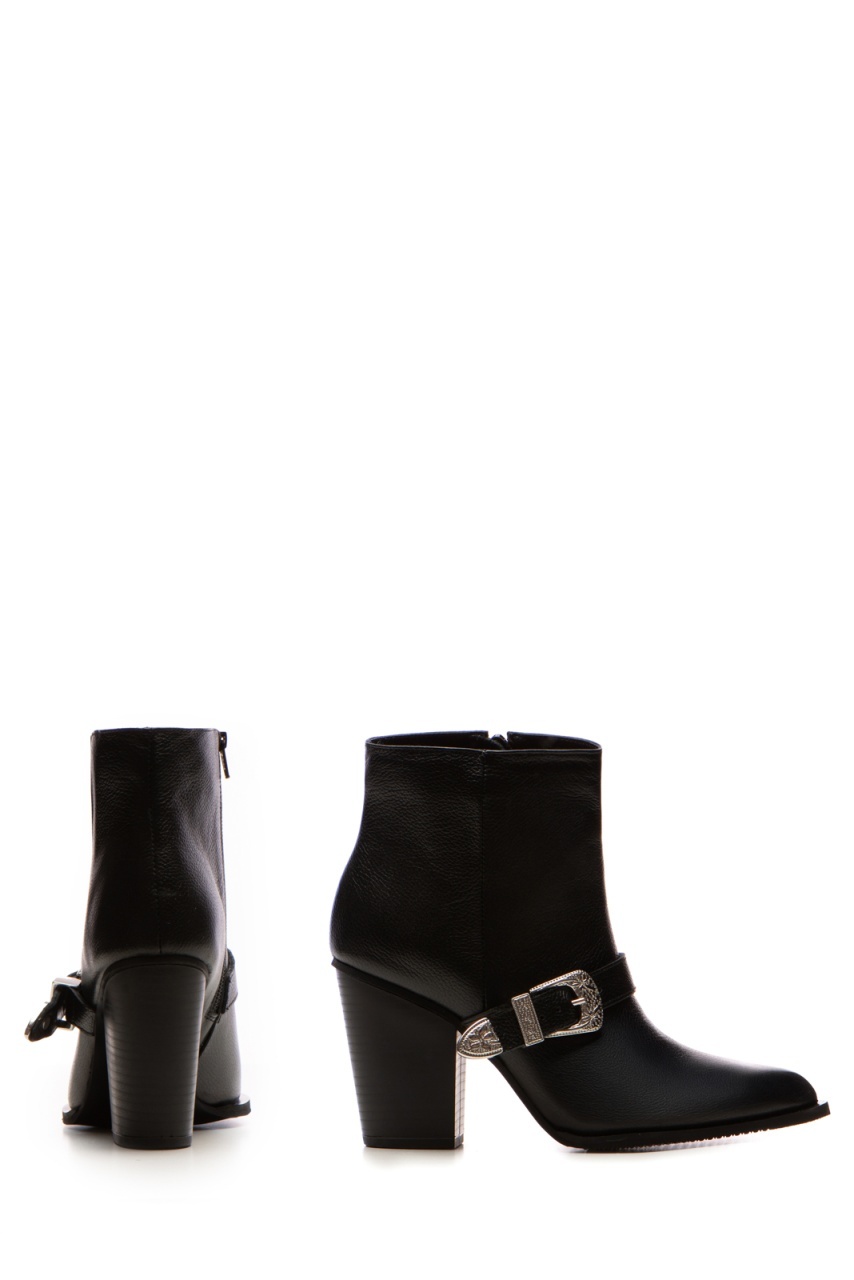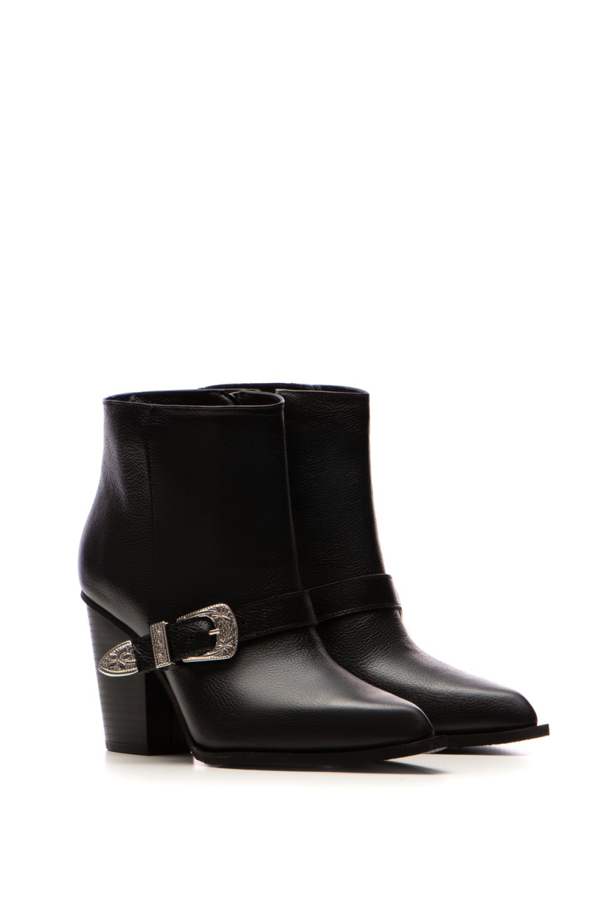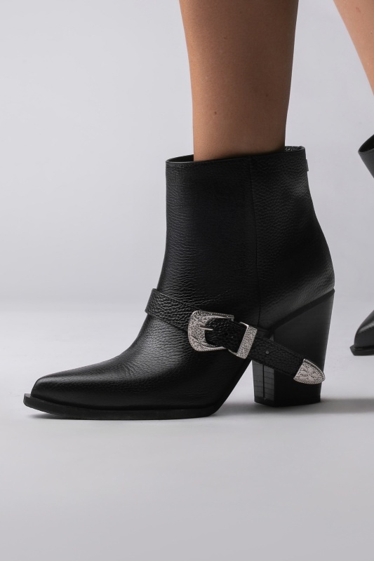 Descopera ciocatele Ruby cu toc inalt, confectionate din piele naturala bizonata. Culoarea neagra ofera un look elegant, iar accesoriul argintiu adauga un accent stylish. Cu un toc de 8 cm, aceste ciocate sunt perfecte pentru a adauga inaltime si stil oricarei tinute. Interiorul din piele naturala asigura confortul necesar pe parcursul intregii zile. Ideal de purtat in sezonul rece, aceste ciocate sunt alegerea perfecta pentru un look rafinat.