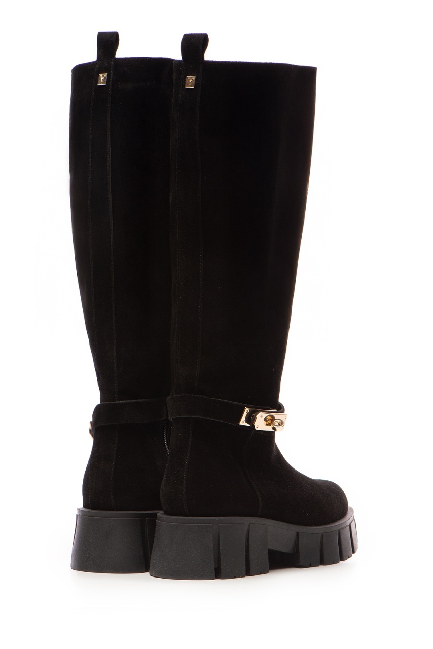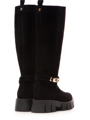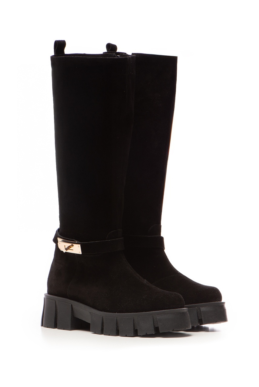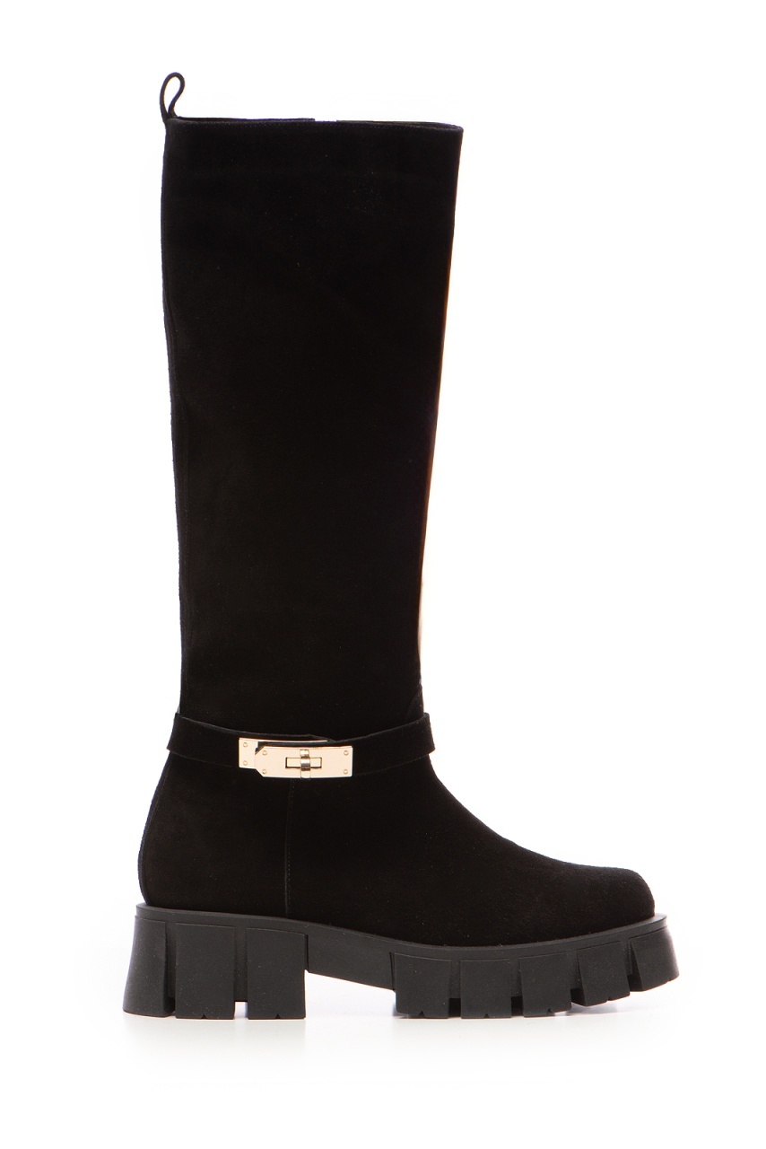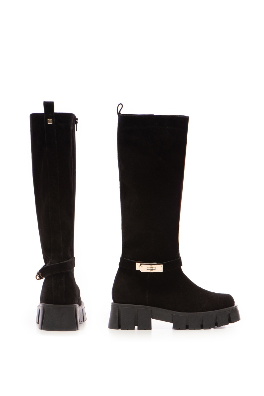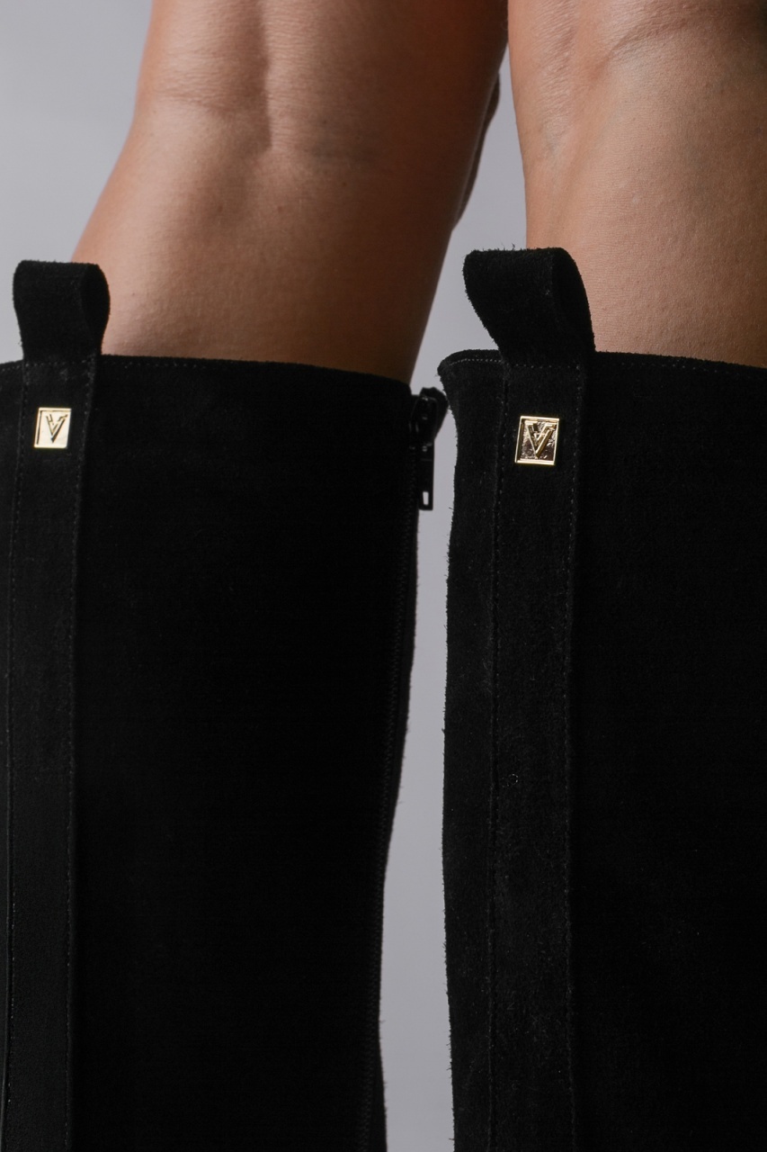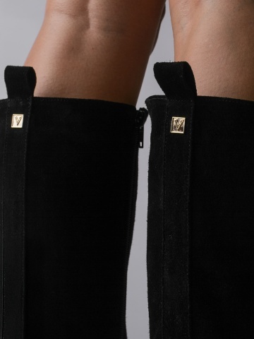 Bocanci Bonnie din piele intoarsa neagra cu fermoar si accesoriu auriu