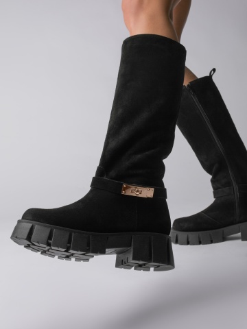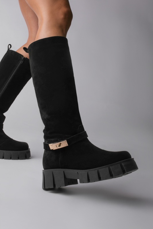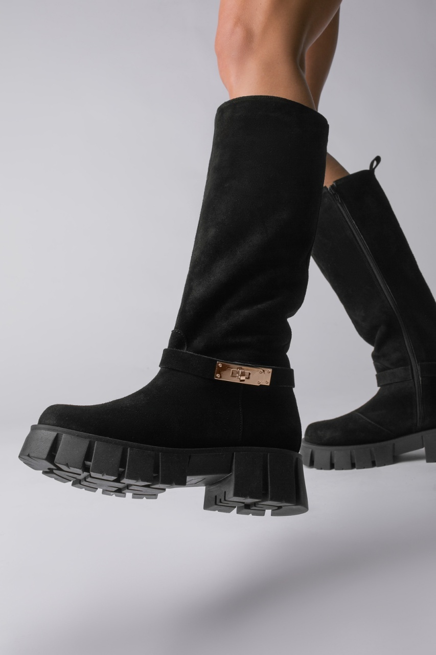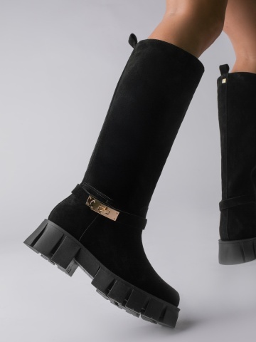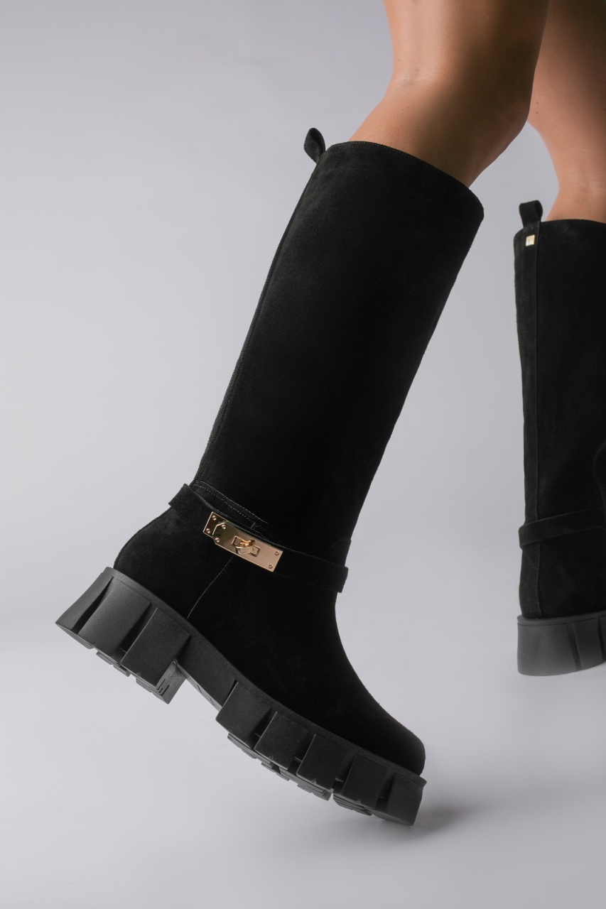 Descopera eleganta si confortul cu Bocancii Bonnie din piele intoarsa neagra cu fermoar si accesoriu auriu de la Vanilla Days. Acesti bocanci sunt confectionati din piele naturala intoarsa, avand un material interior imblanit pentru un plus de caldura. Talpa de 5cm ofera stabilitate, iar detaliile aurii aduc un strop de rafinament. Ideali pentru orice ocazie, acesti bocanci vor completa perfect orice tinuta.
