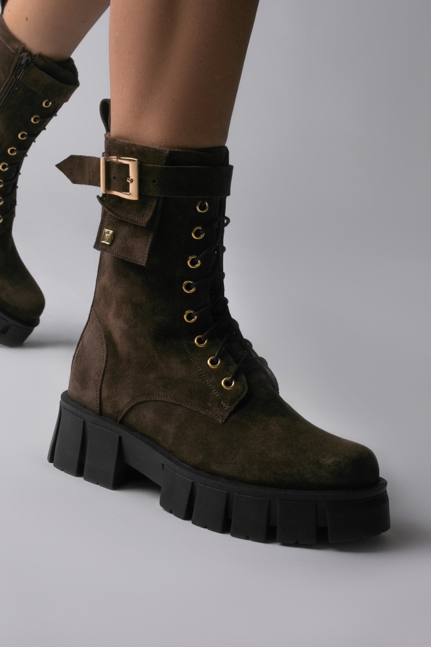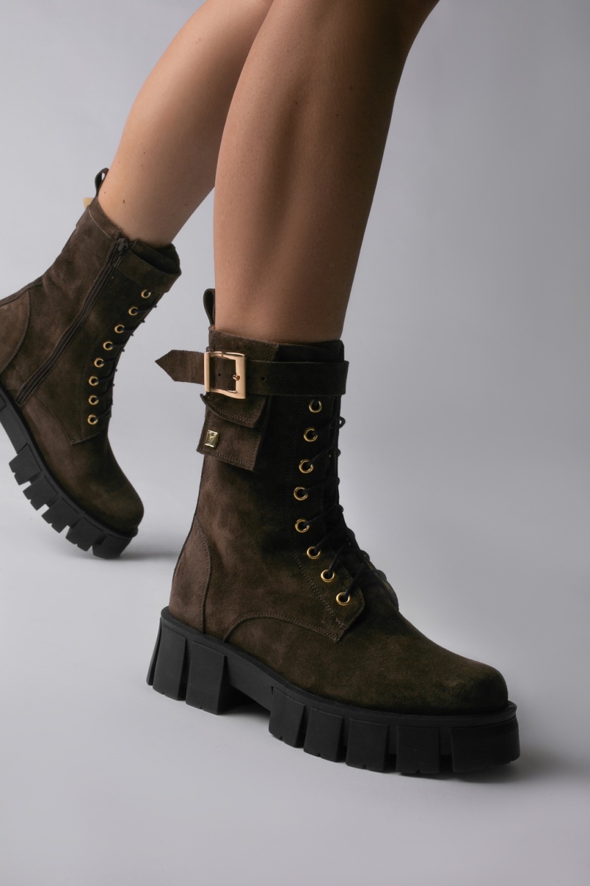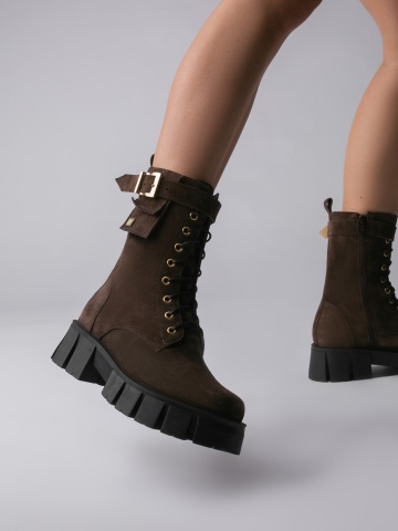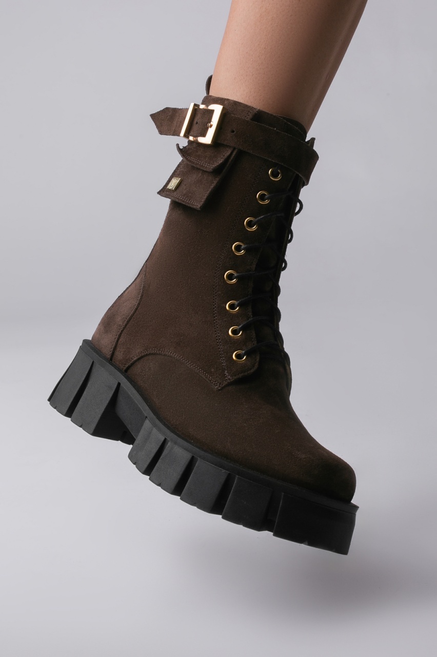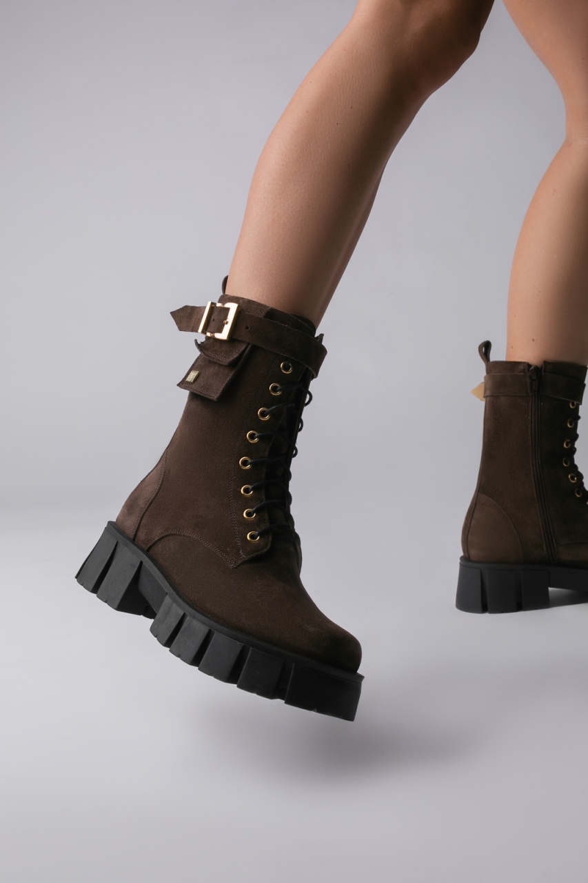 Descopera Ghetele Alya din piele intoarsa maro de la Vanilla Days. Aceste ghete elegante, cu accesorii aurii, sunt confectionate din piele naturala intoarsa si imblanite pentru un confort exceptional. Modelul prezinta un calapod modern, cu o inaltime a talpii de 5cm, ideal pentru un look stilat. Perfecte pentru orice ocazie, aceste ghete adauga un strop de rafinament tinutelor tale. Nu rata ocazia de a purta aceste accesorii deosebite!