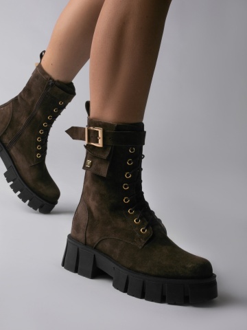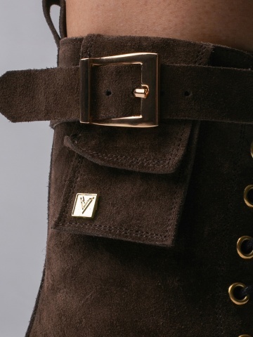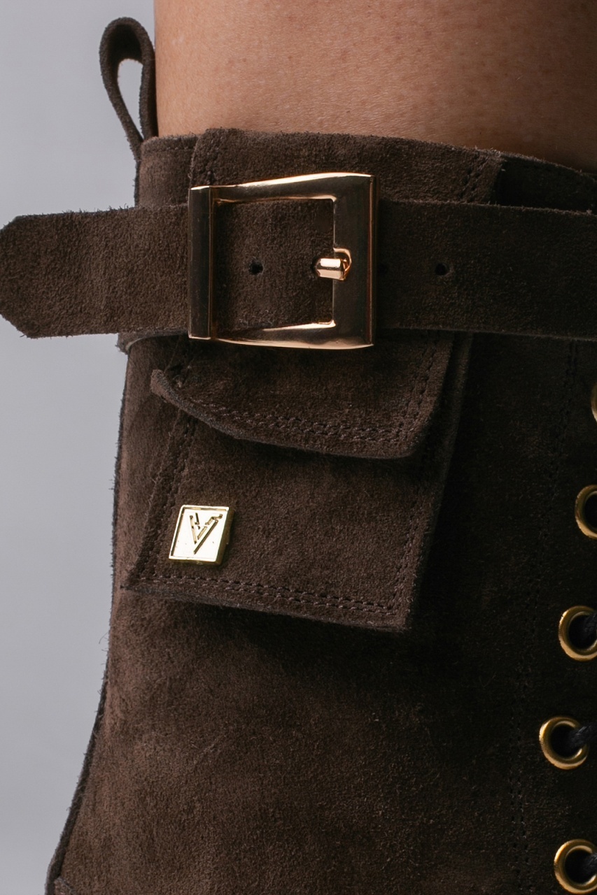 Ghete Alya din piele intoarsa maro cu accesorii aurii