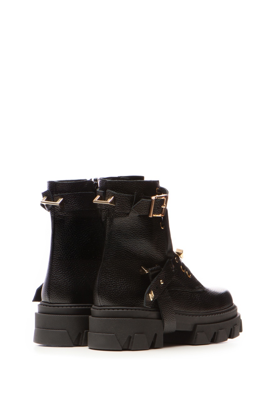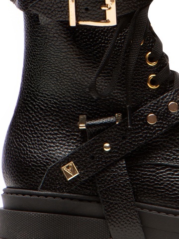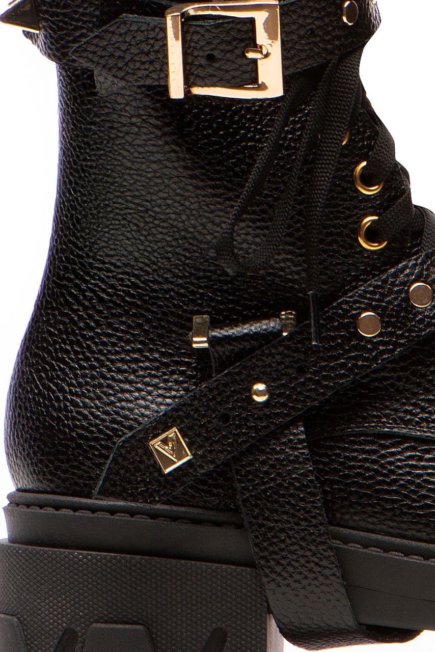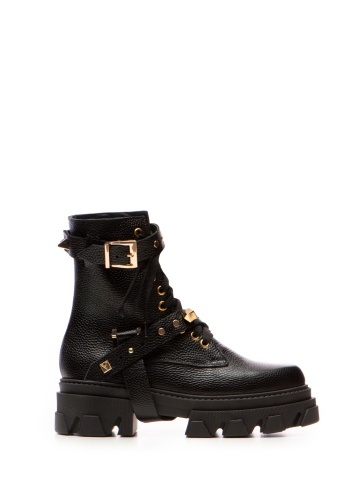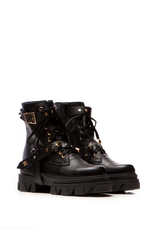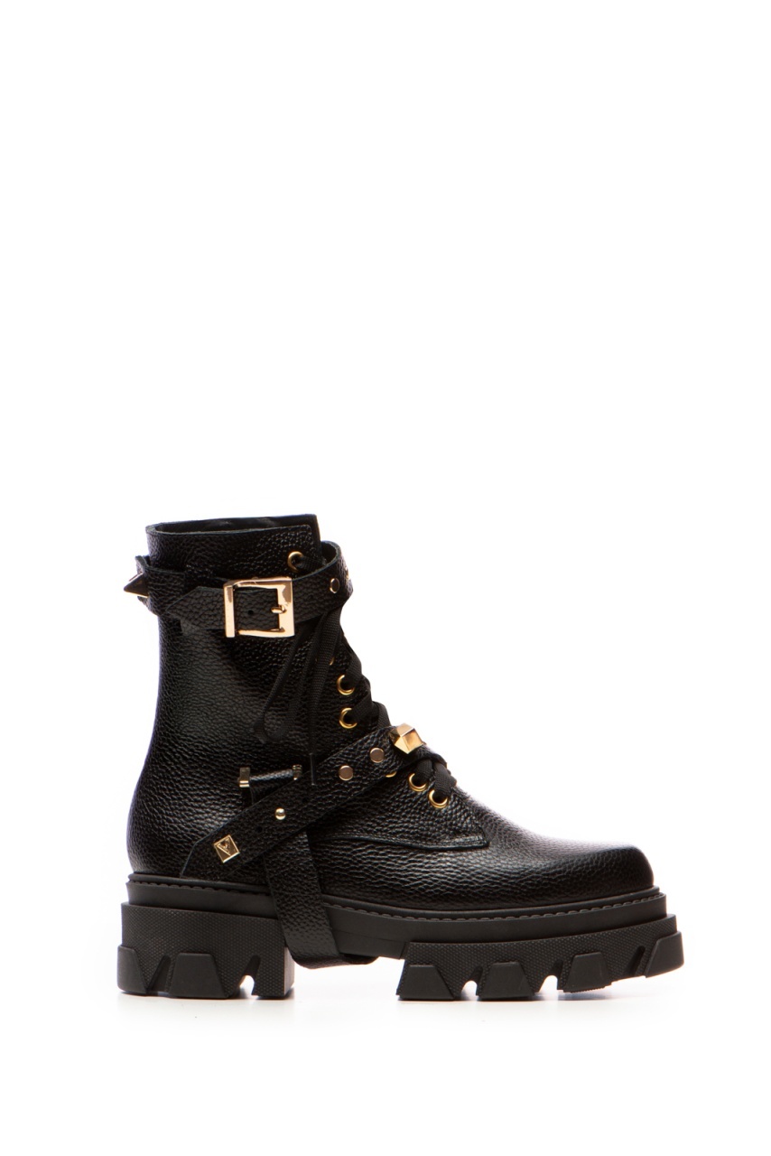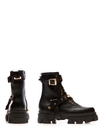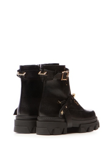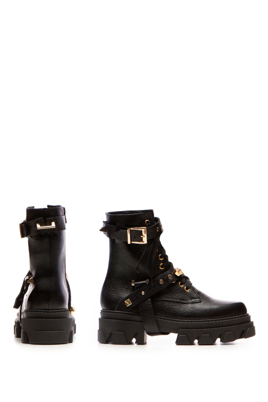 Bocanci Berta Piele Bizonata Neagra cu Accesorii Aurii