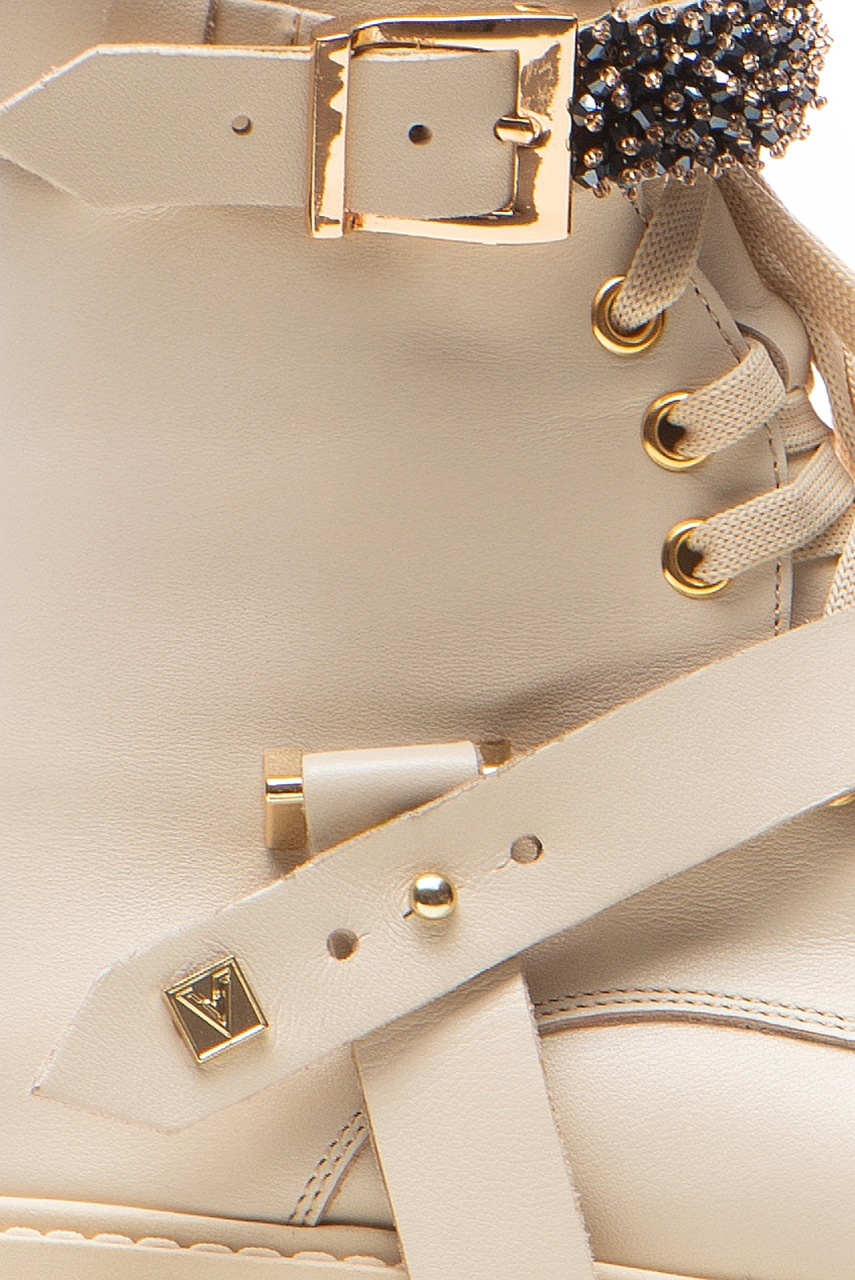 Bocanci Nadia din piele naturala crem, cu accesorii