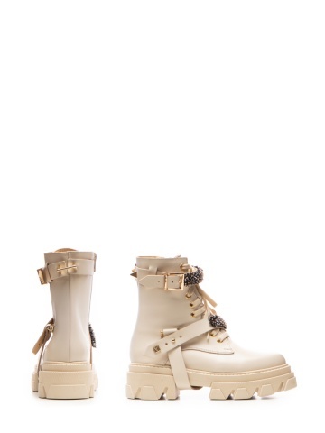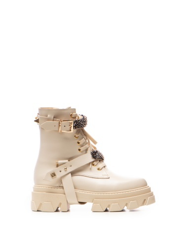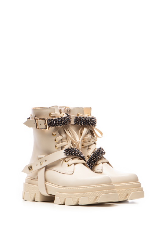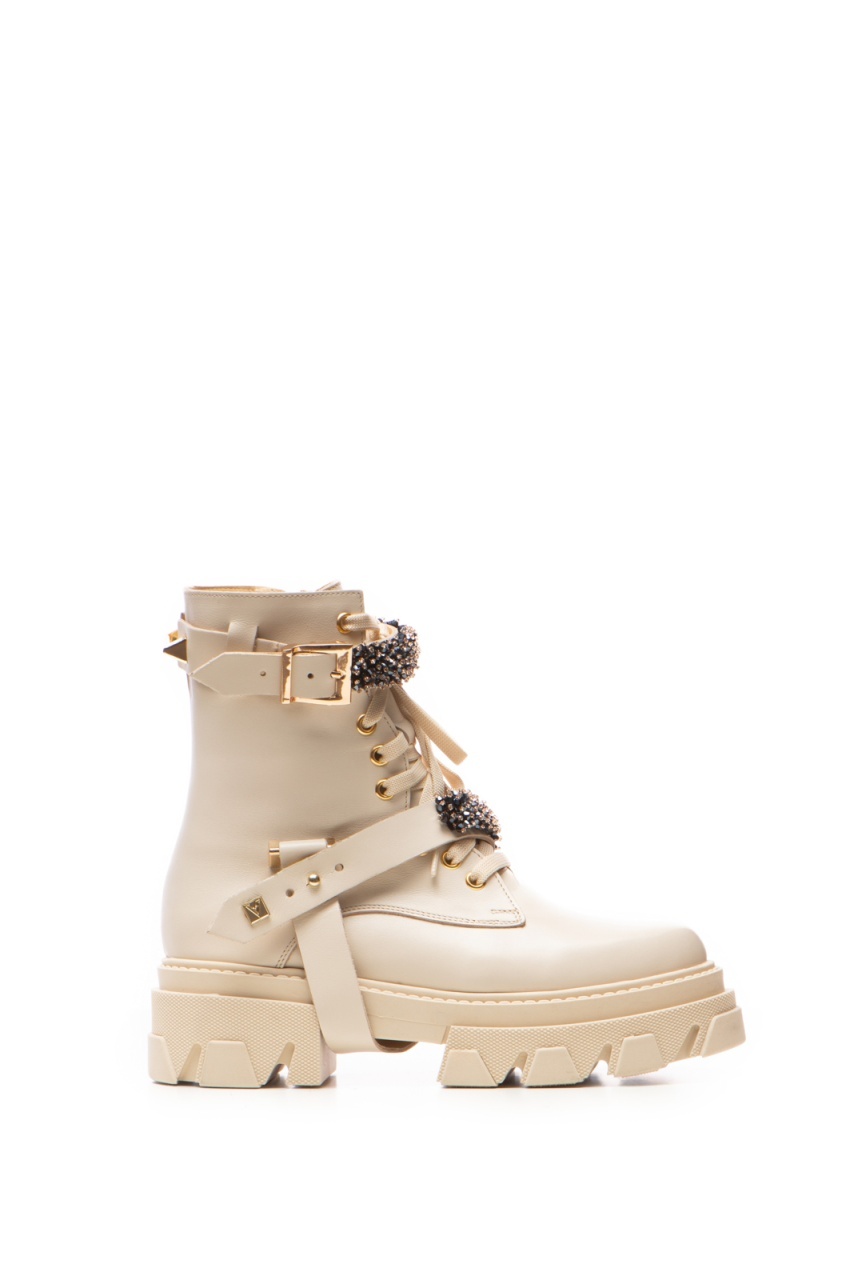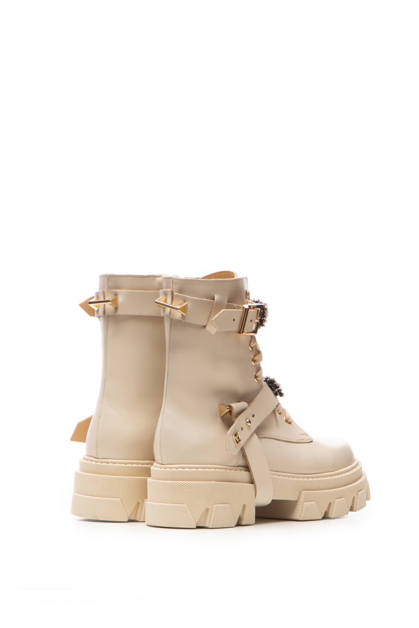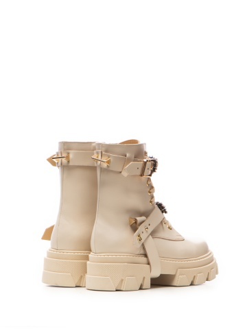 Bocanci crem din piele naturală, realizați impecabil și accesorii elegante, pentru un stil feminin și rafinat.