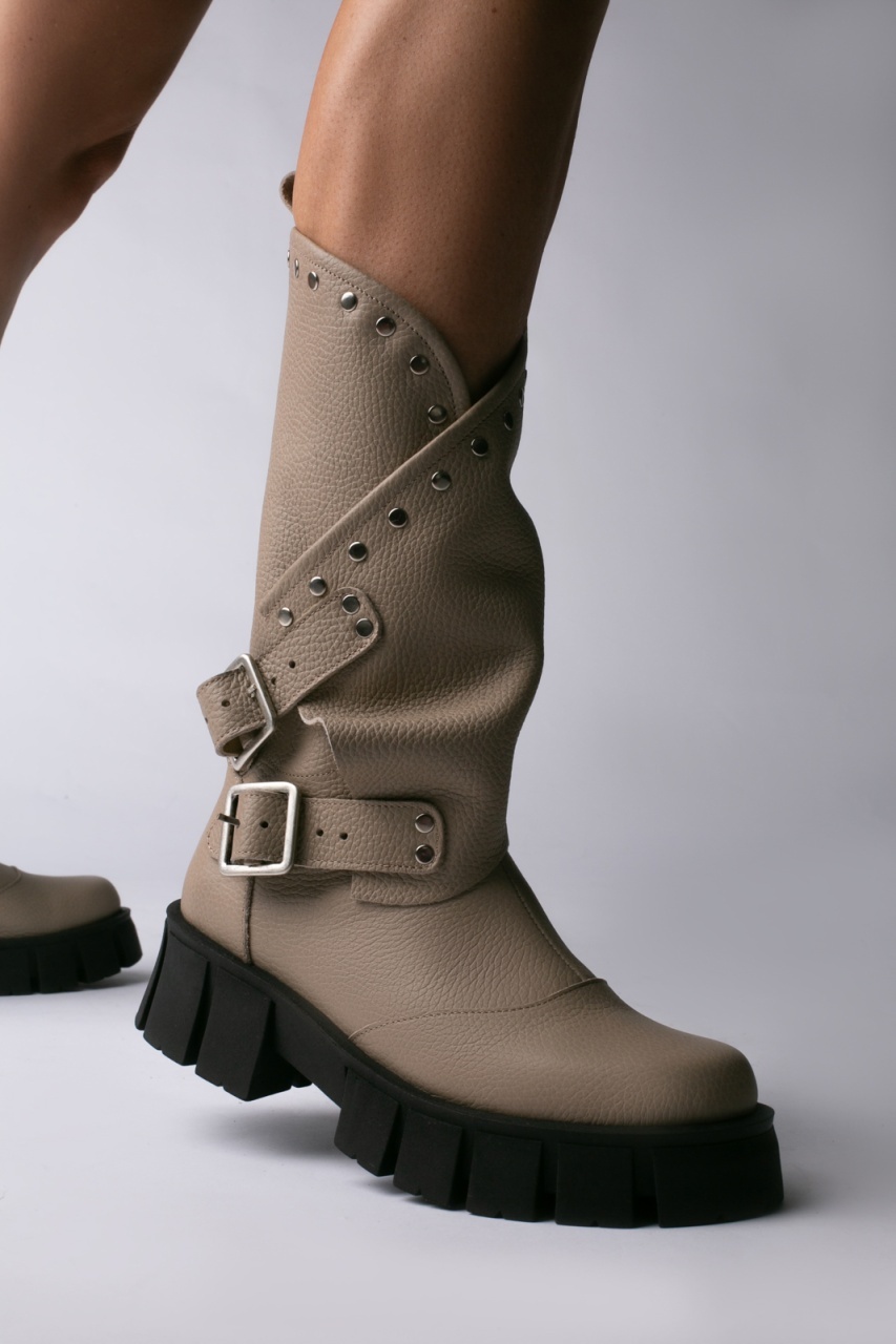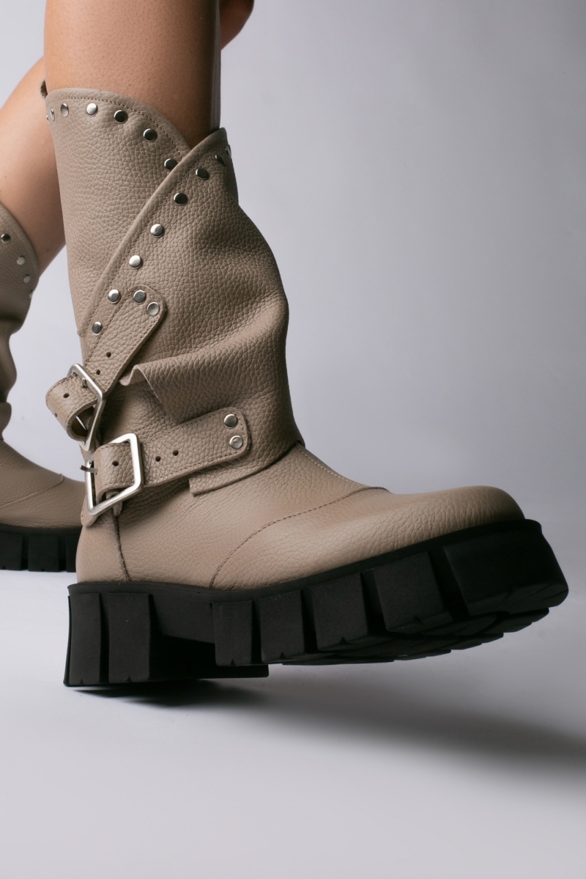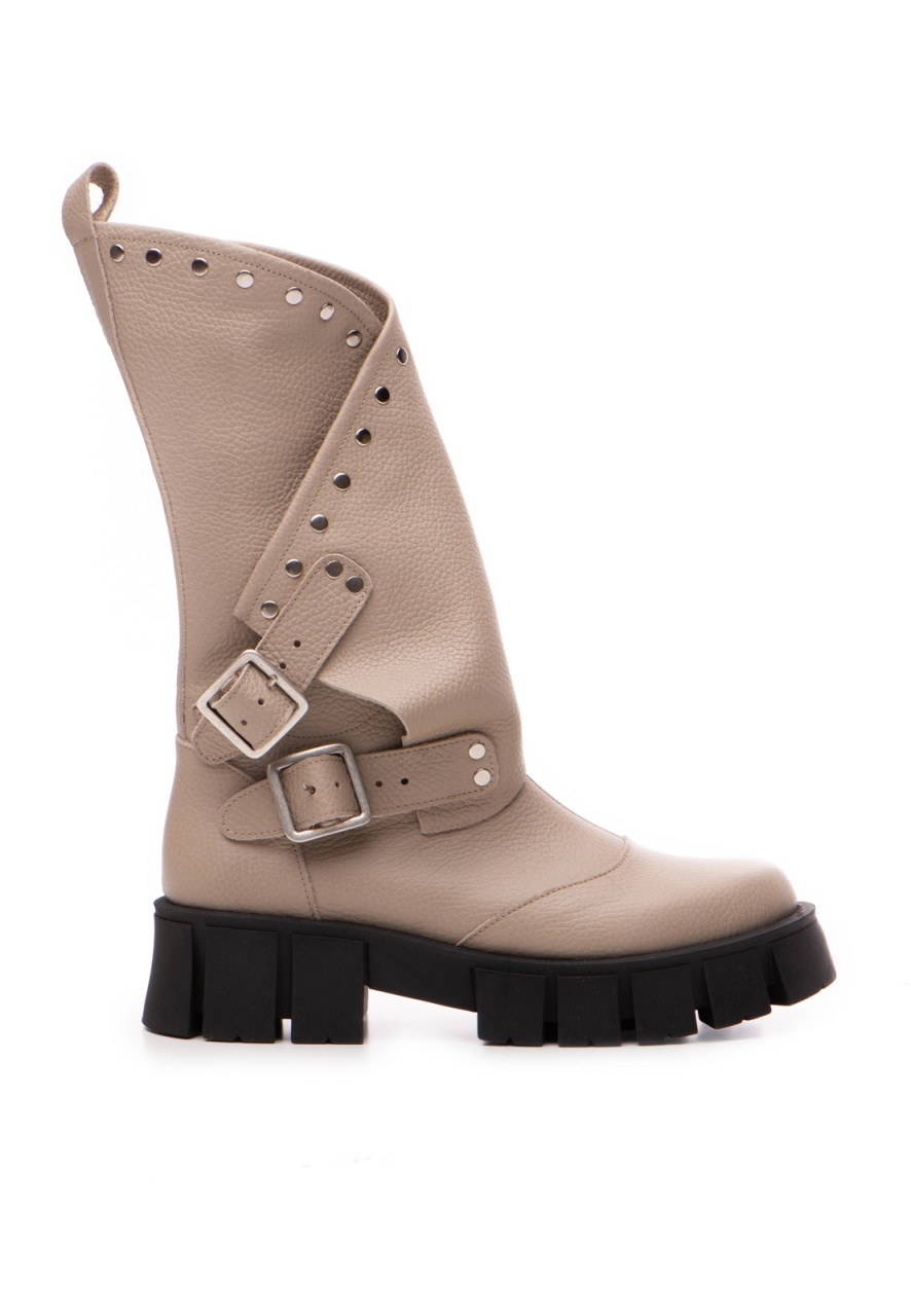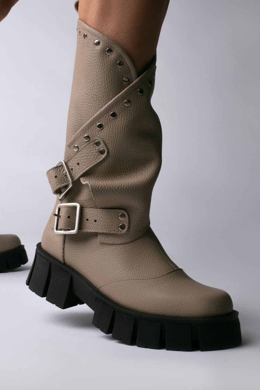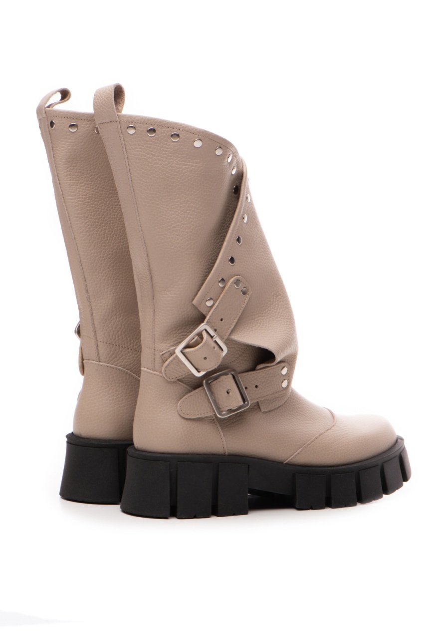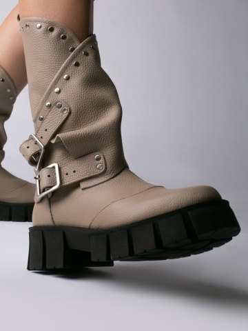 Bocanci Oman Cool Edition din piele bizonata grej cu accesorii argintii