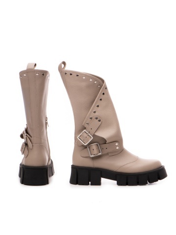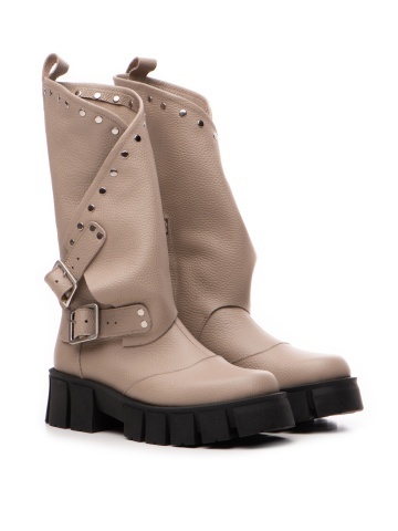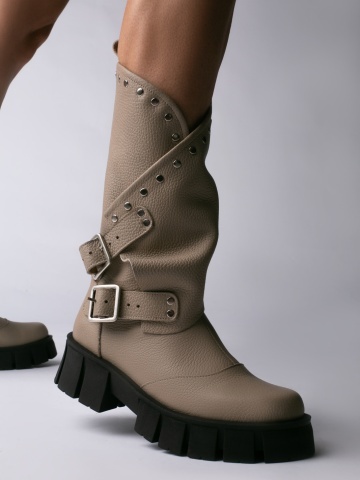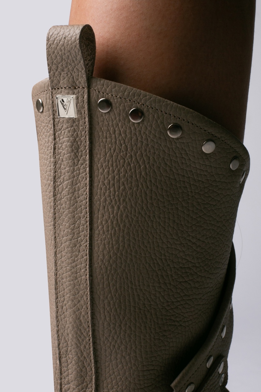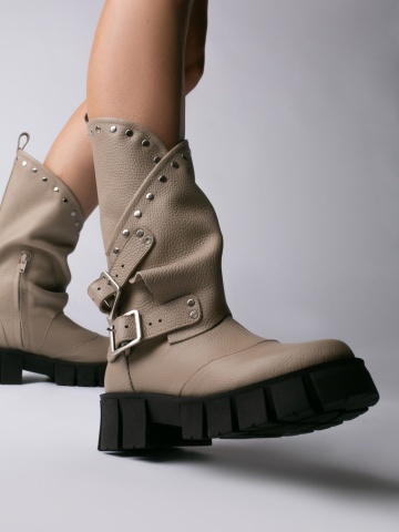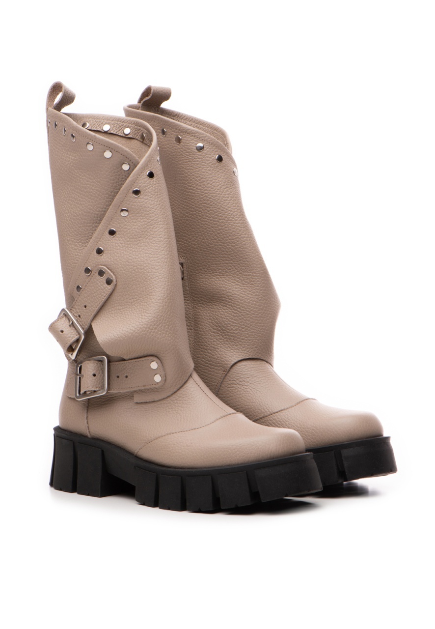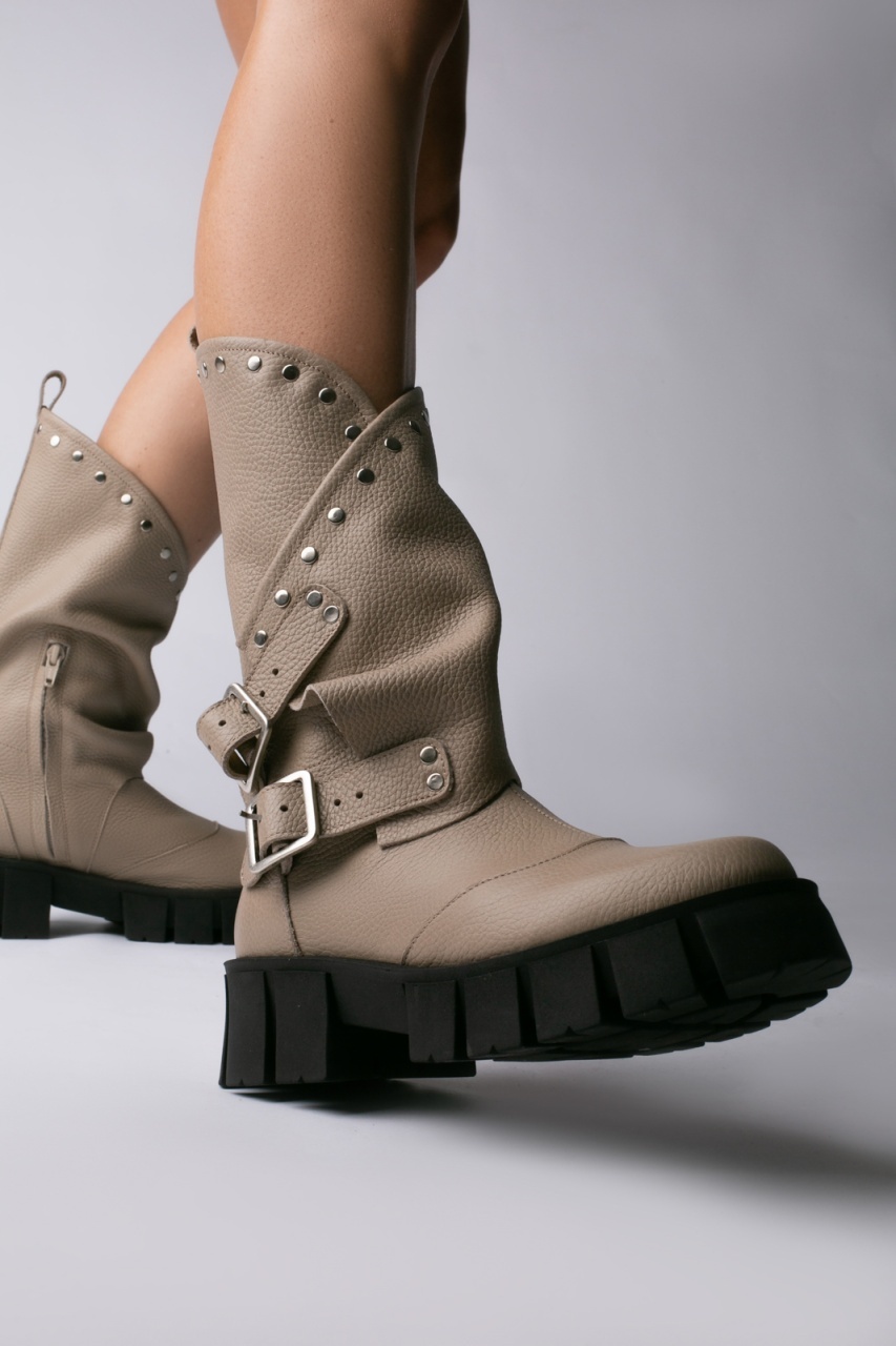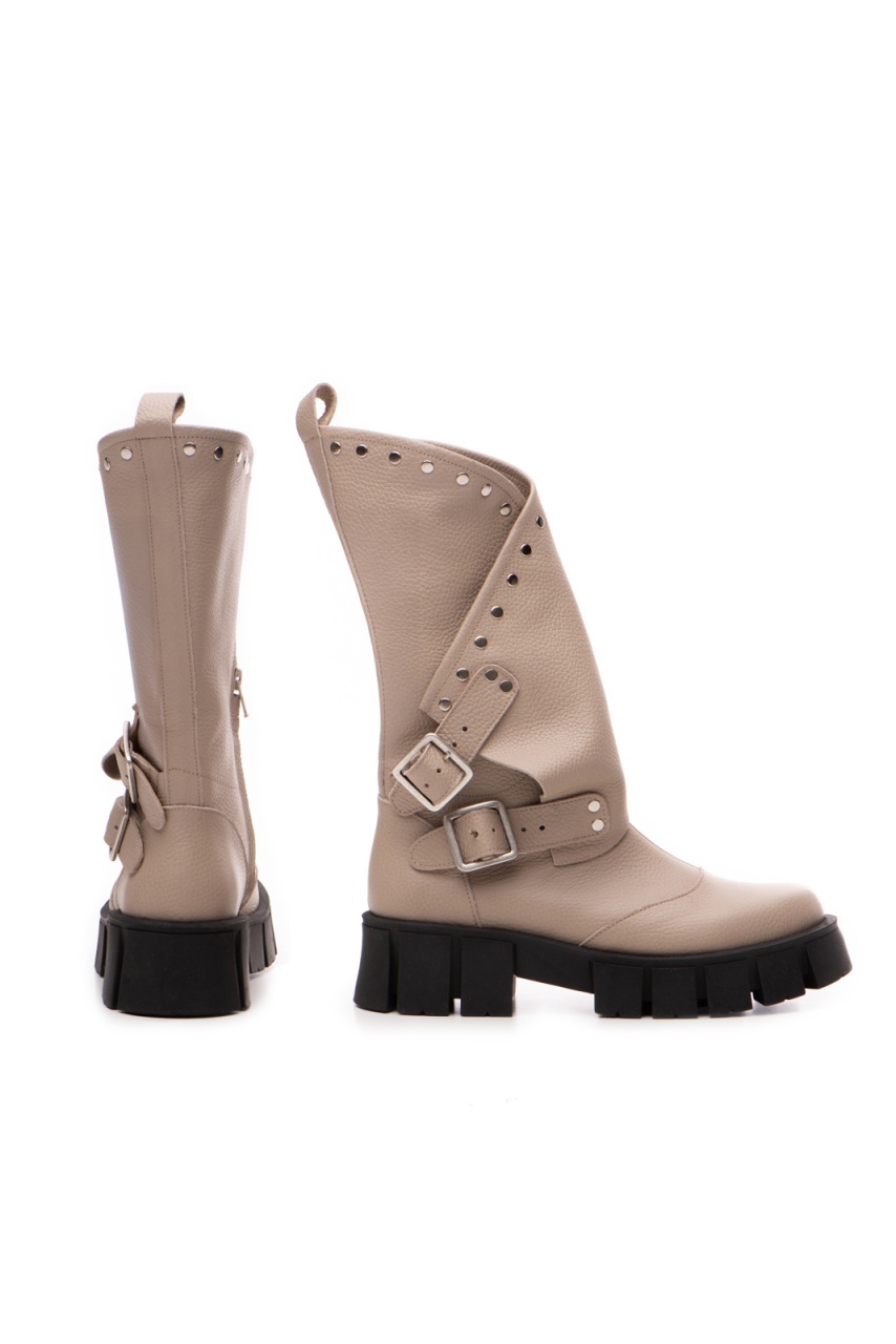 Bocanci Oman Cool Edition din piele bizonata grej cu accesorii argintii