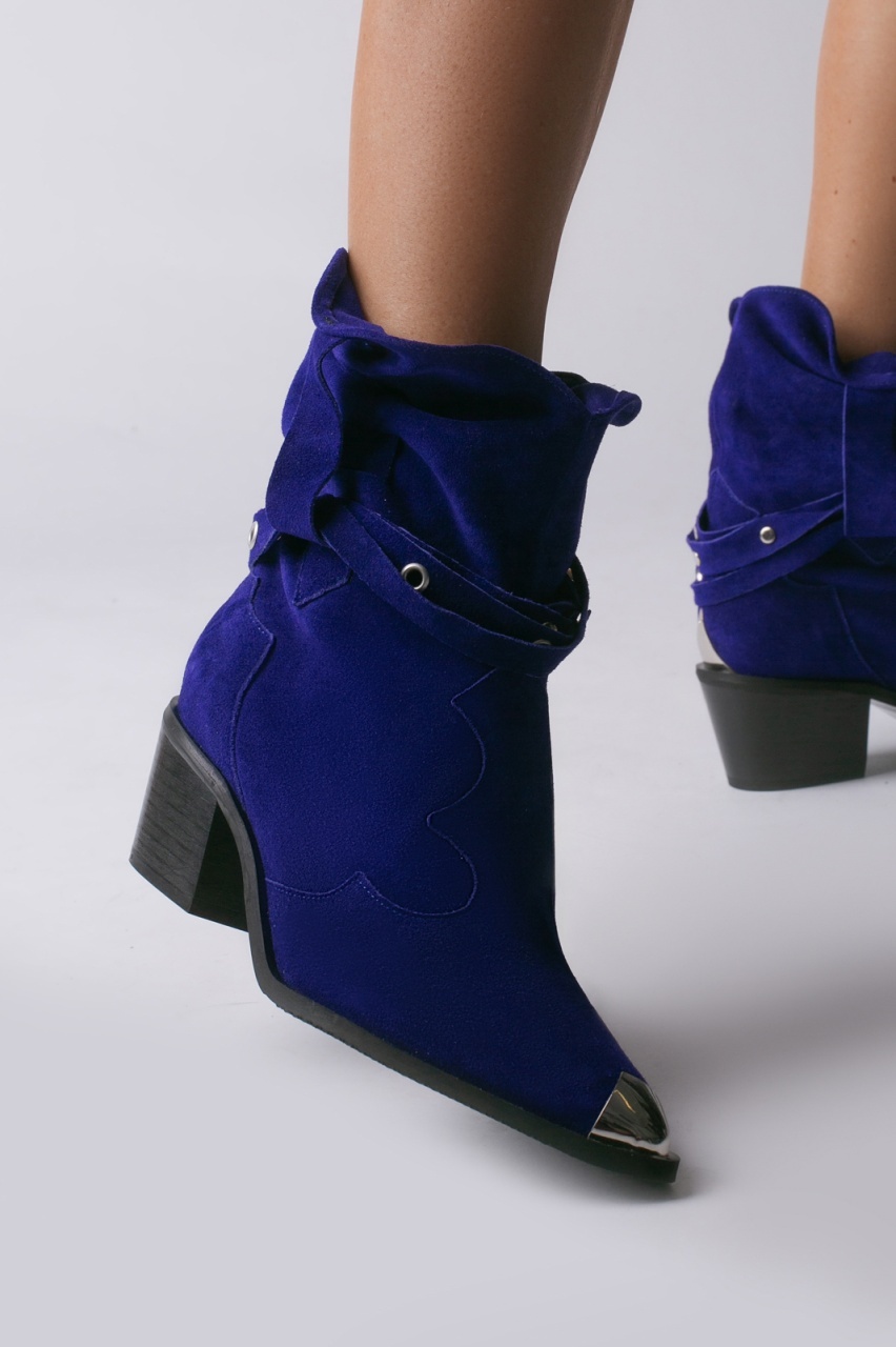 Ciocate Emira piele intoarsa albastru inchis cu accesorii argintii si talpa neagra