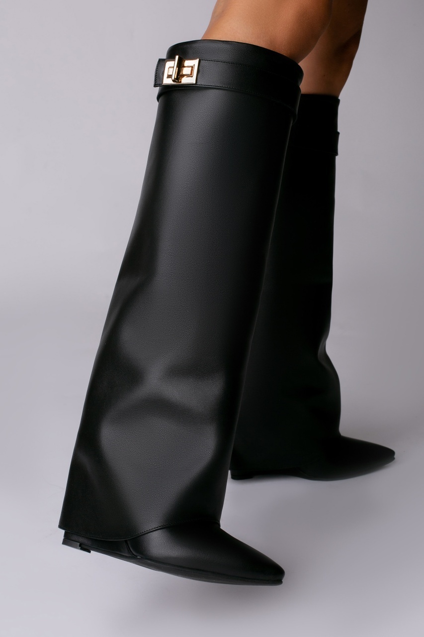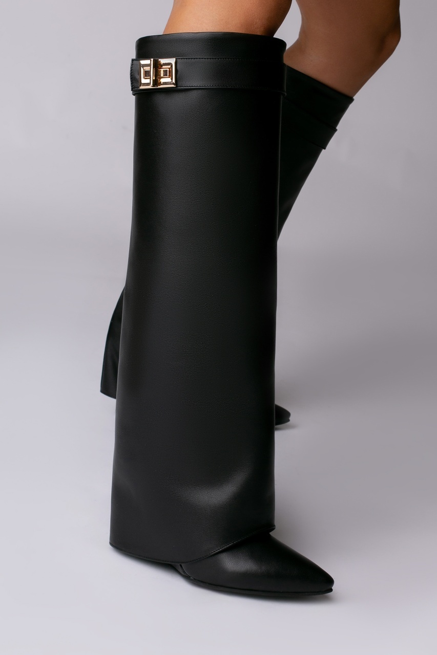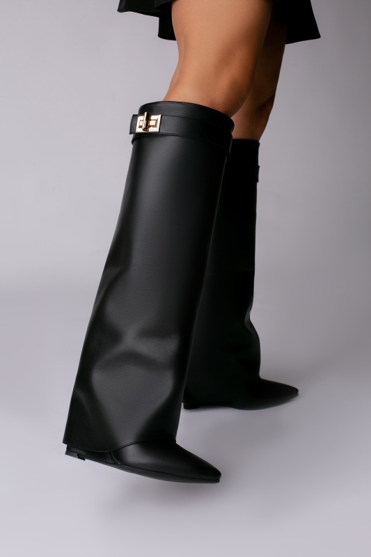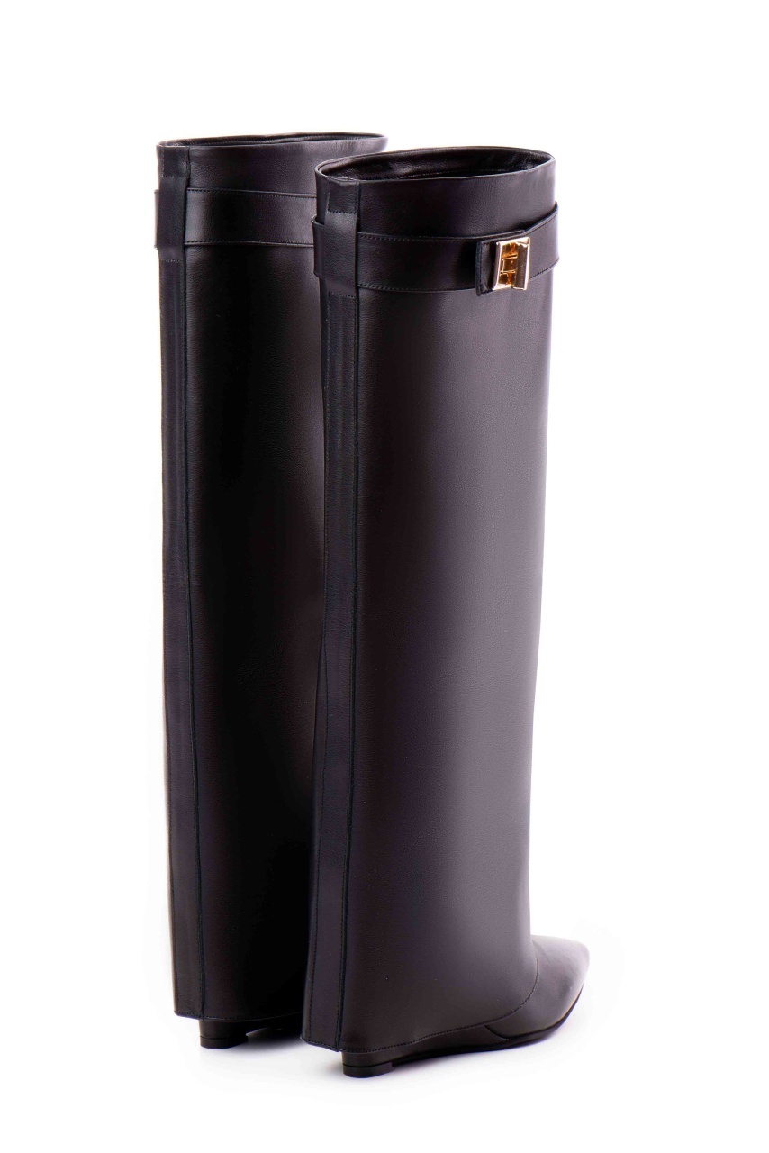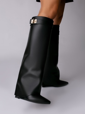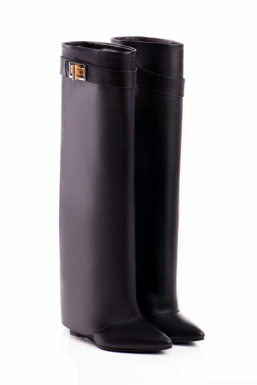 Cizmele Morrigan din piele naturală neagră oferă un echilibru perfect între eleganță și confort. Produsul vine insotit de doua curele detasabile, cu accesoriu auriu sau argintiu.