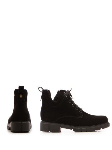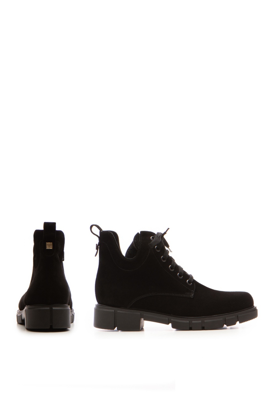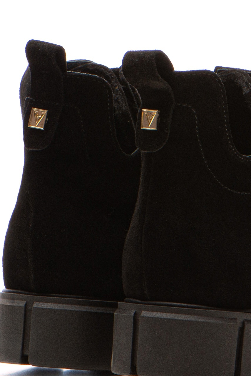 Ghete negre din piele întoarsă, lucrate manual impecabil, pentru un stil urban elegant și rafinat.