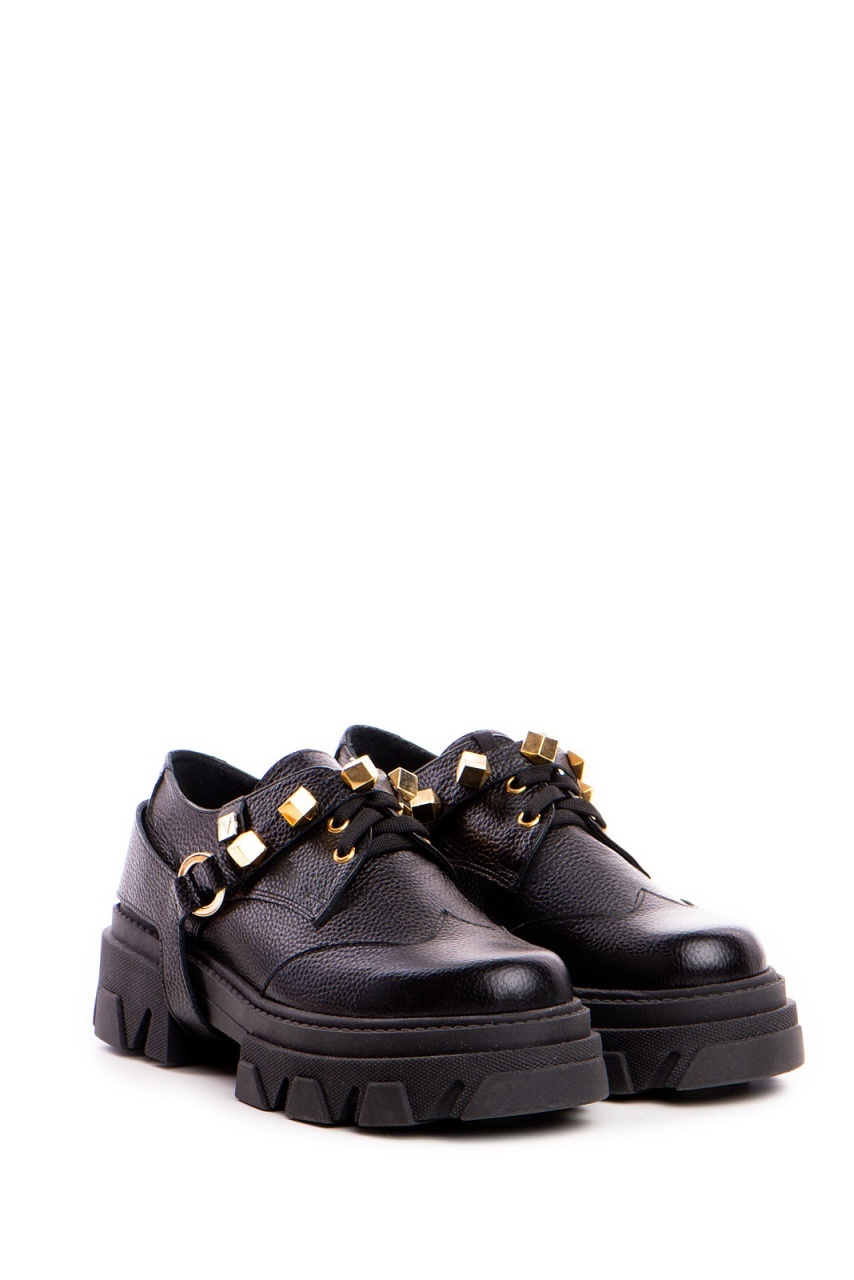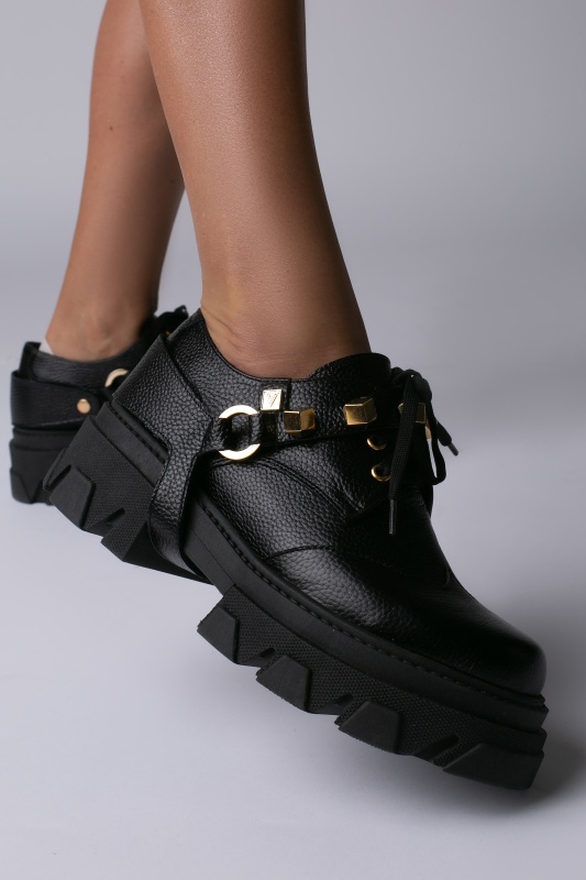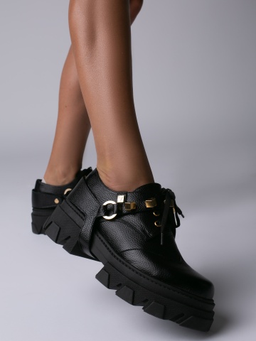 Pantofi Dorian piele neagra bizonata si accesoriu detasabil