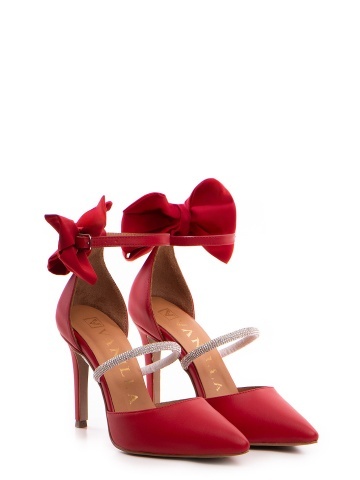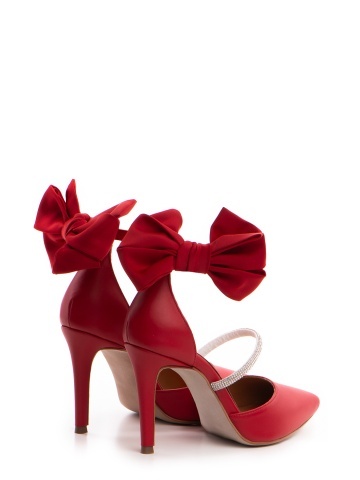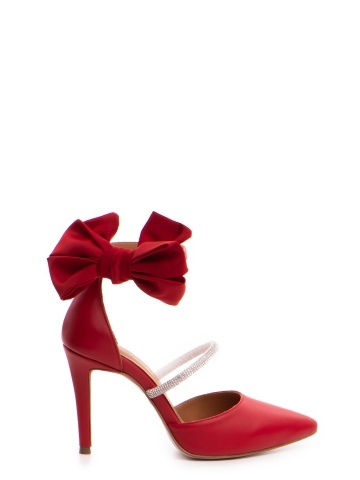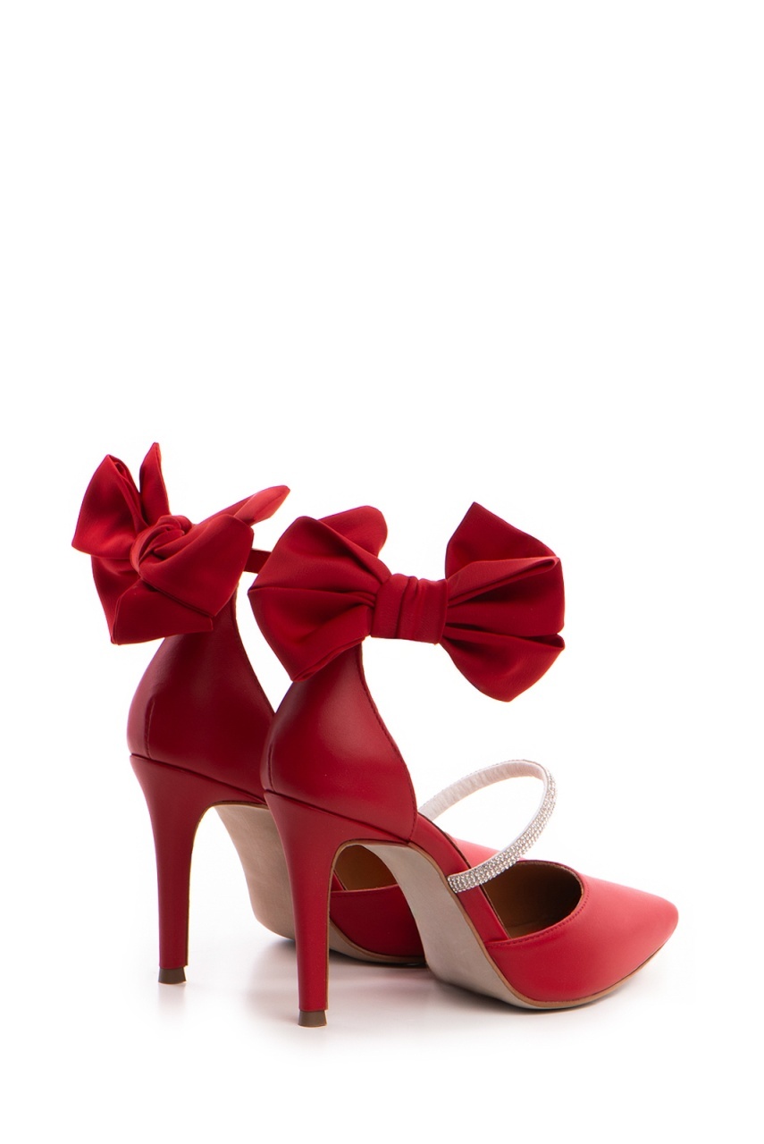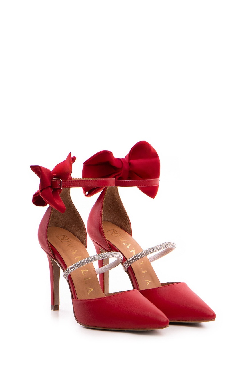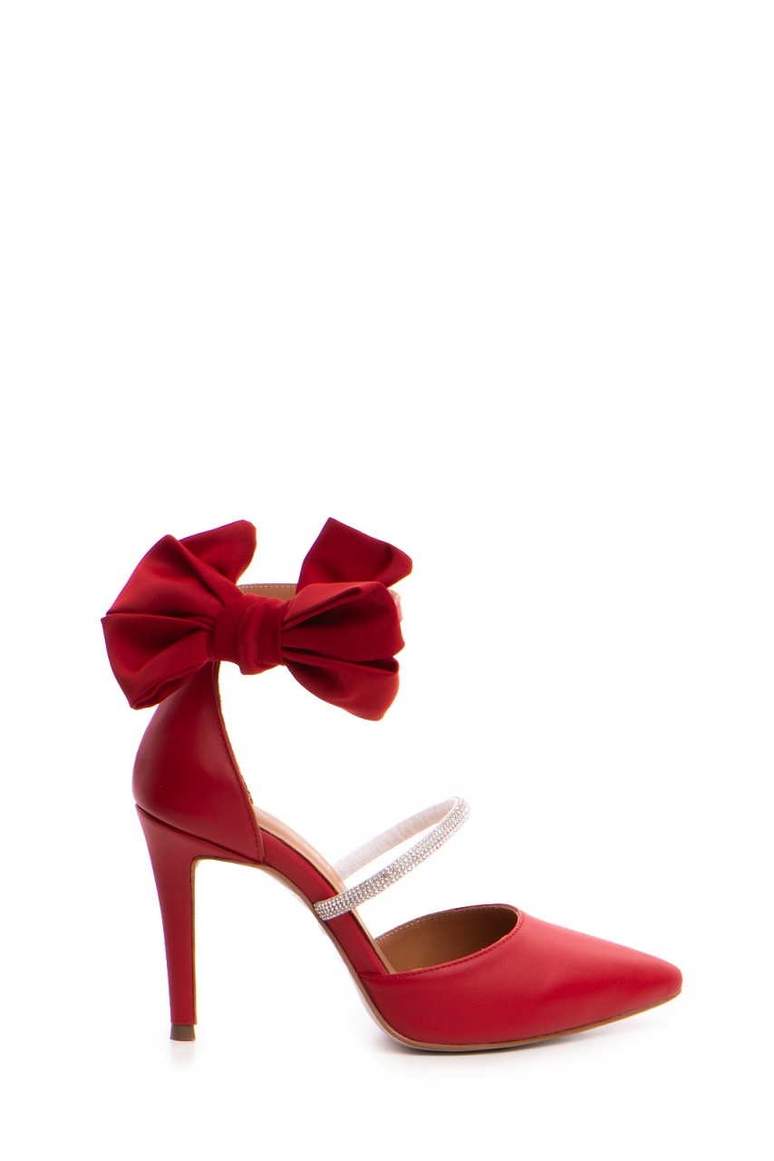 Pantofi Stiletto cu toc Arabela din piele rosie cu cristale si funda