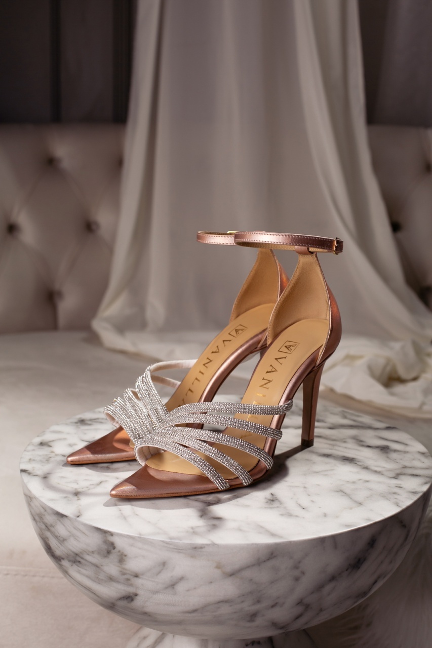 Sandale rose cu toc subțire din piele naturală, lucrate impecabil pentru o apariție feminină, sofisticată și radiantă.