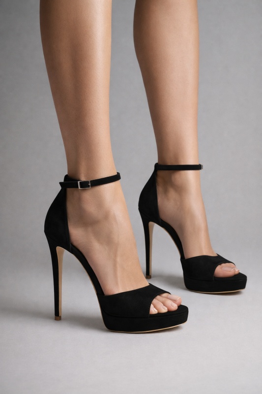 Sandale negre cu toc subtire din piele intoarsa cu executie impecabila si senzatie eleganta si rafinata la purtare