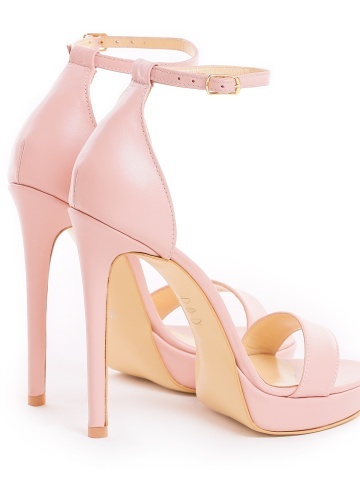 Sandale Viena cu toc subtire, piele naturala, roz pal