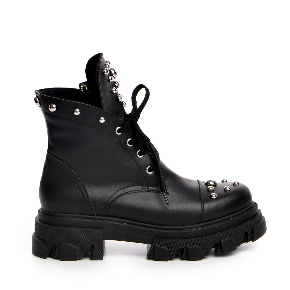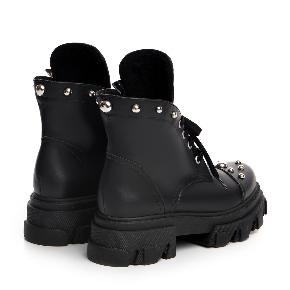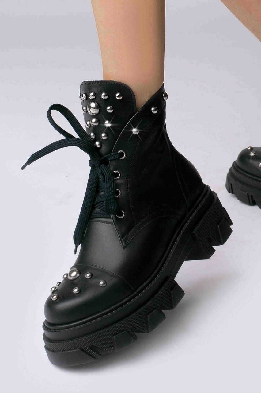 Bocanci negri din piele netedă, confecționați manual pentru un stil urban îndrăzneț și elegant.