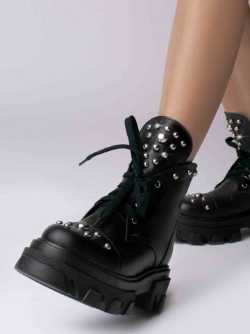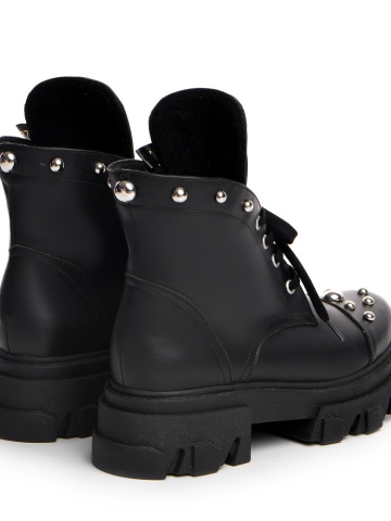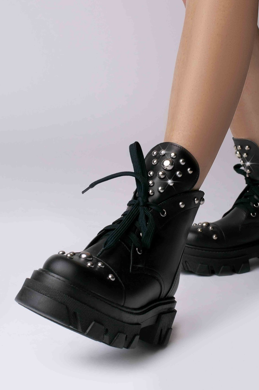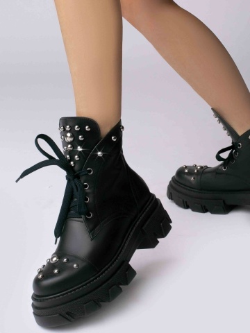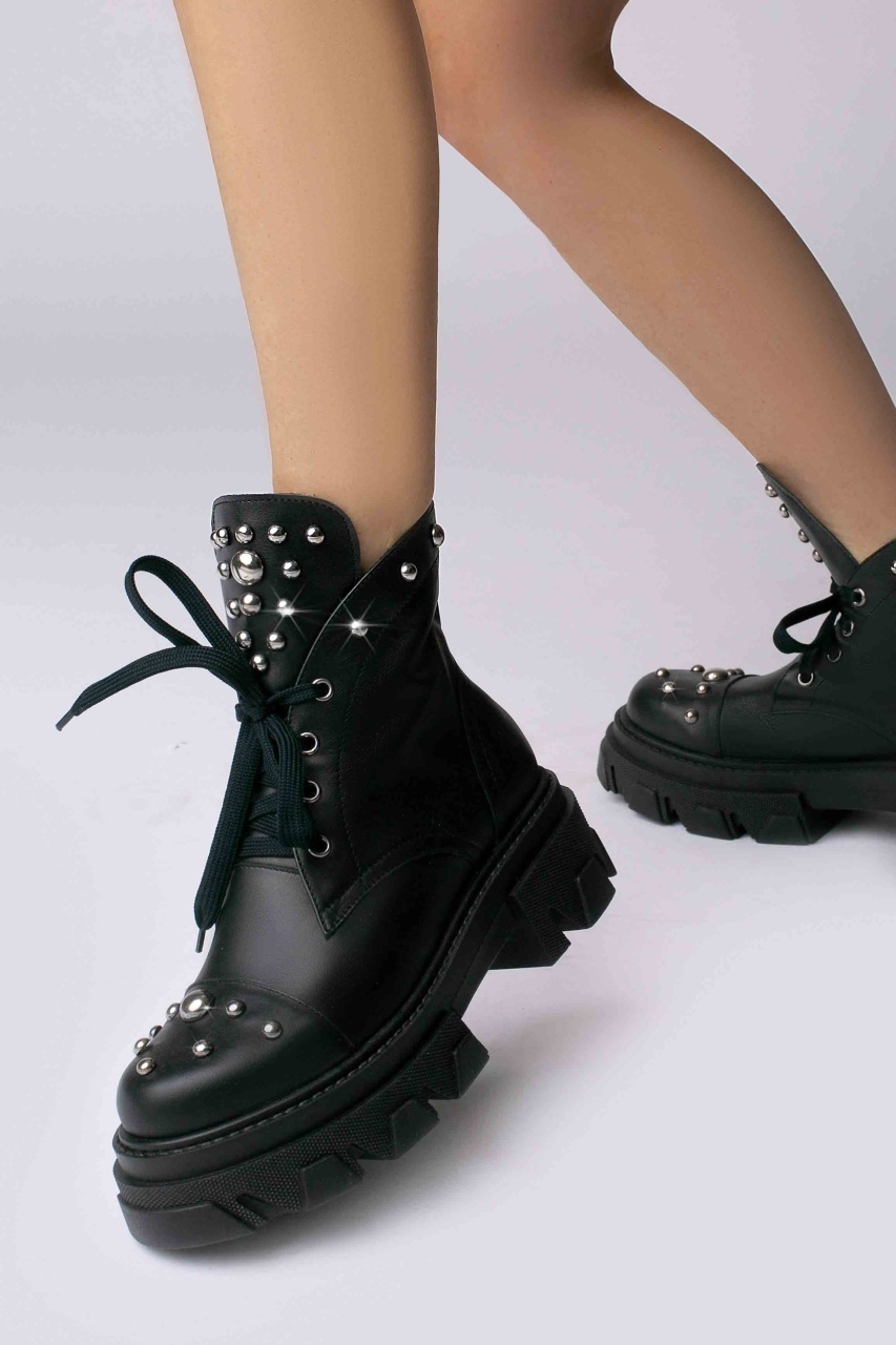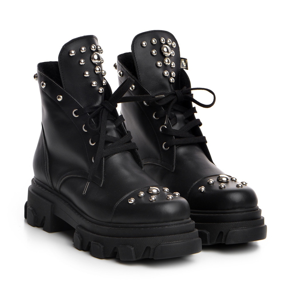 Bocanci negri din piele netedă, confecționați manual pentru un stil urban îndrăzneț și elegant.