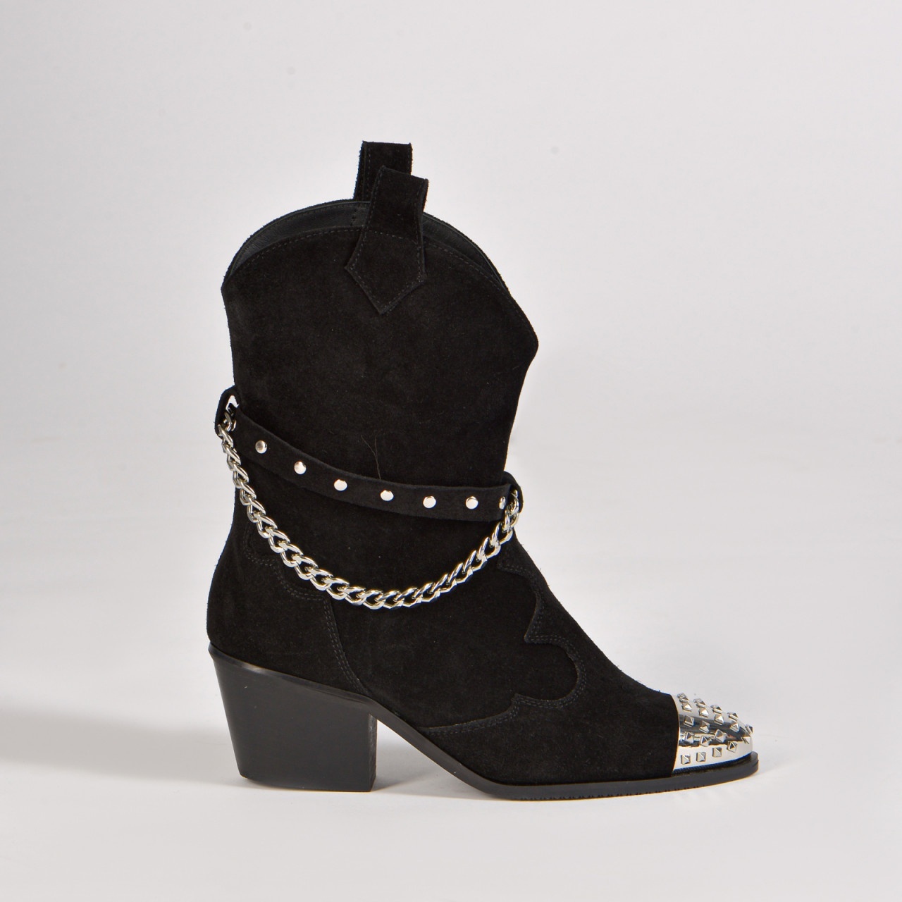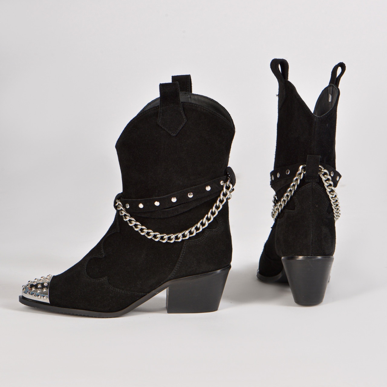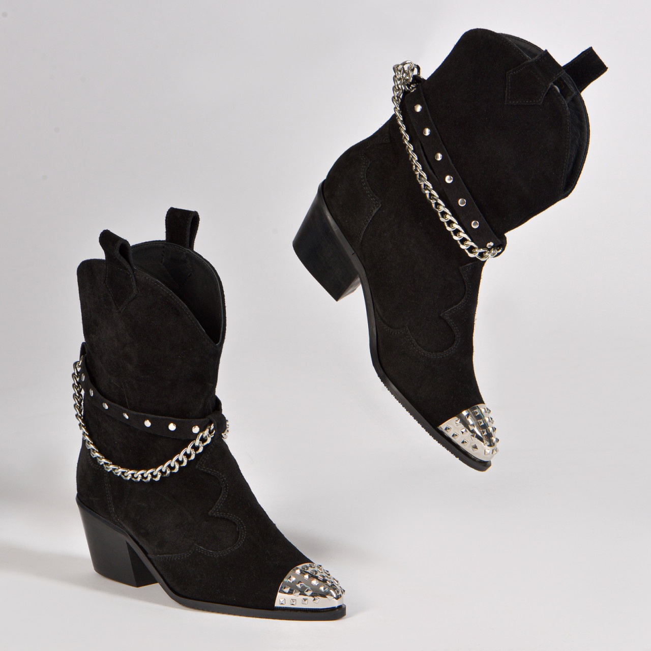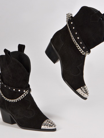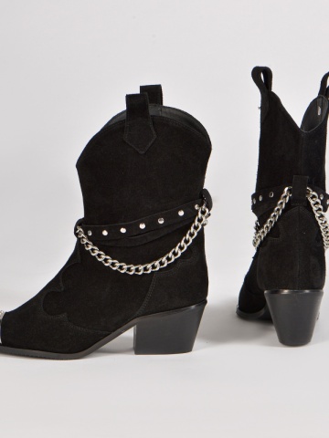 Ciocatele Aryan din piele intoarsa neagra cu accesorii argintii ofera confort, executie impecabila si un design sofisticat si elegant.