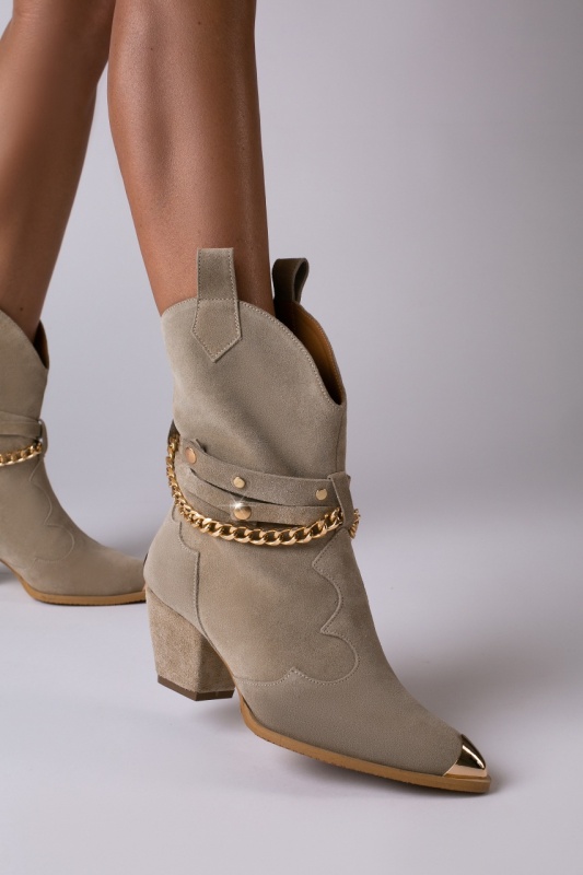 Ciocate Bushra piele intoarsa nude de dama cu accesorii aurii