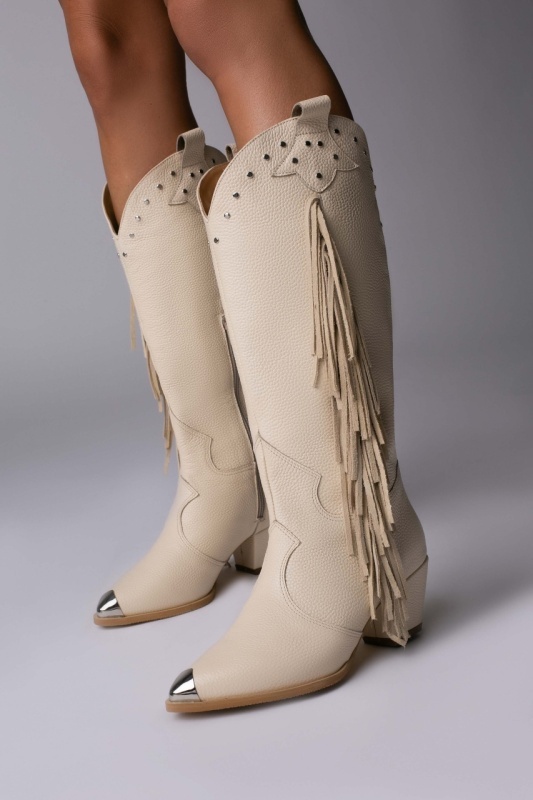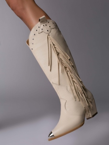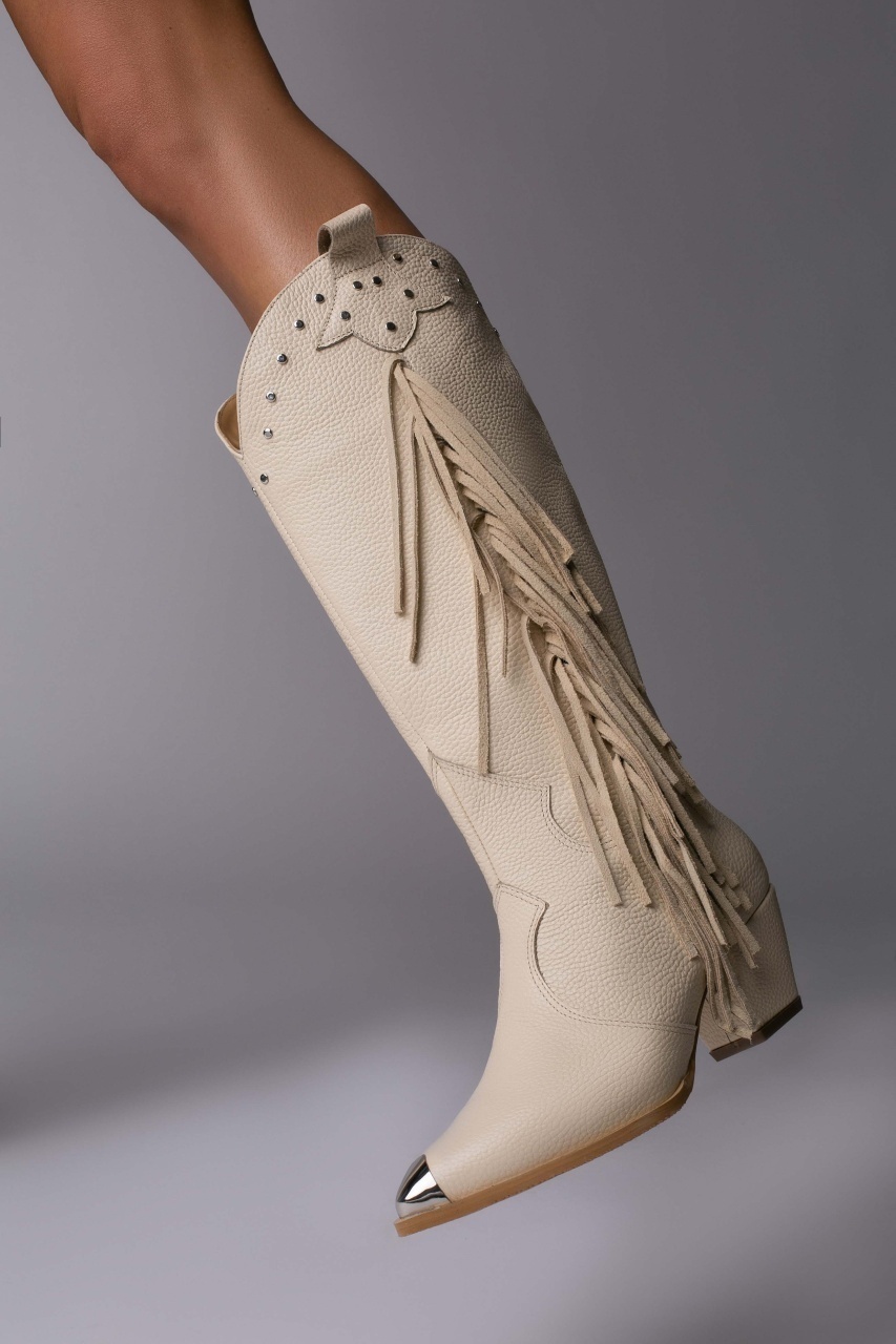 Ciocate Calypso piele bizonata crem cu accesorii argintii