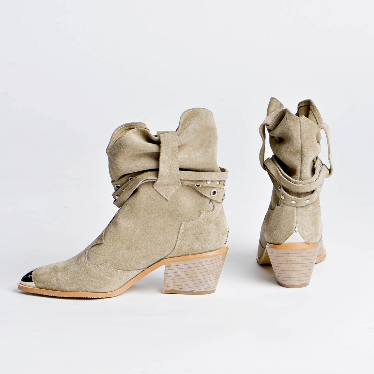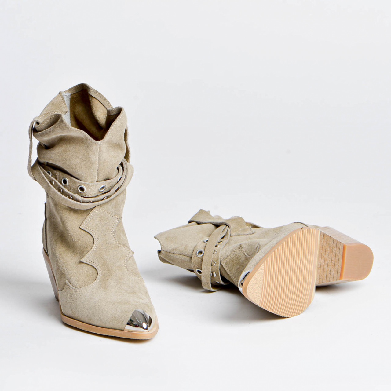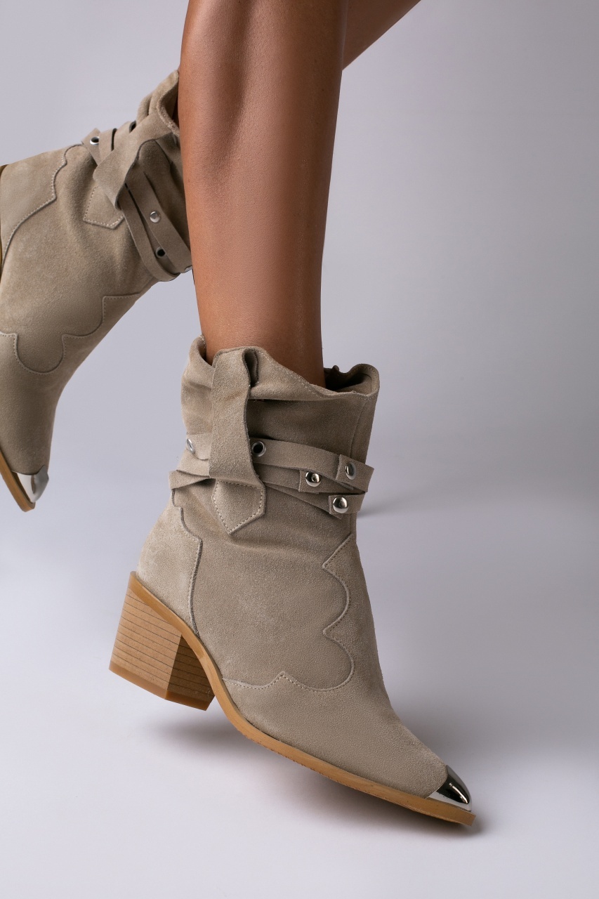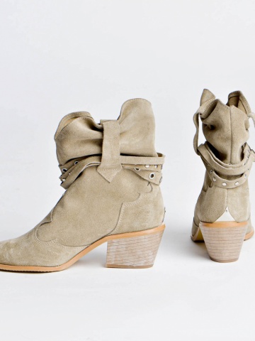 Ciocatele Emira din piele intoarsa premium cu accesorii argintii ofera confort, calitate impecabila si un design sofisticat.