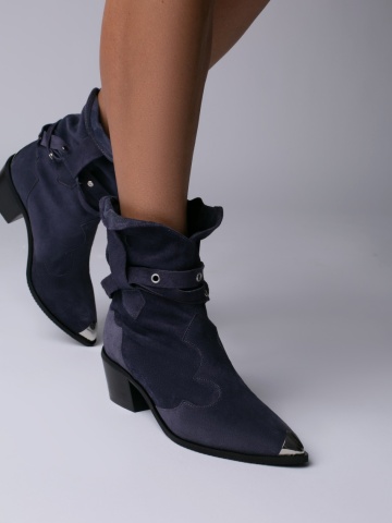 Ciocate Emira piele intoarsa mov inchis cu accesorii argintii si talpa neagra