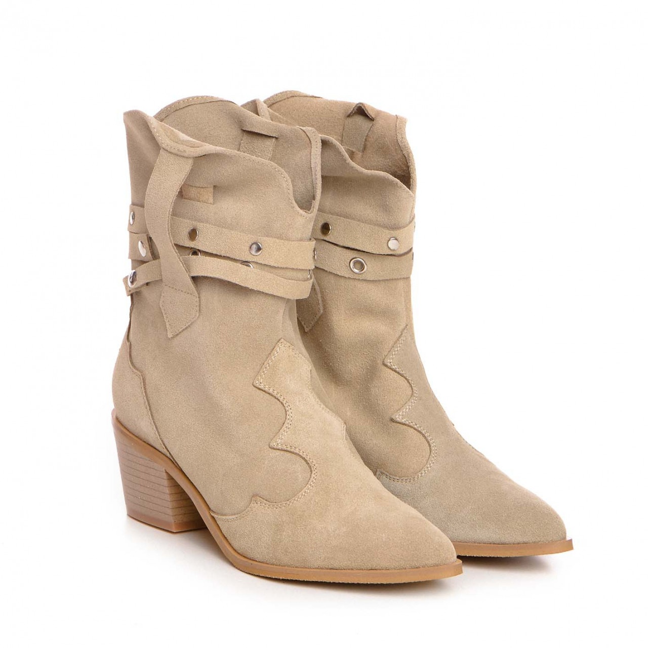 Ciocatele Emira din piele intoarsa premium nude ofera confort, executie impecabila si un design minimalist rafinat.