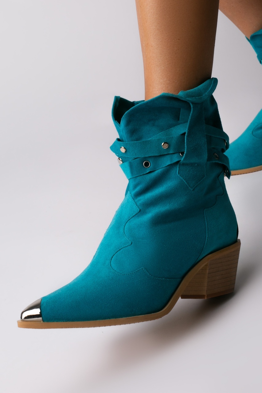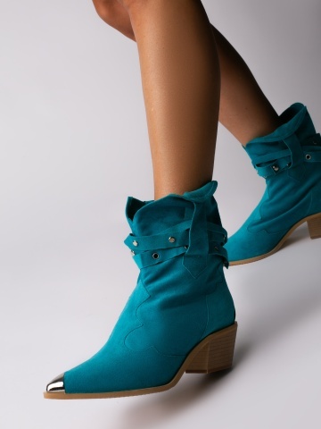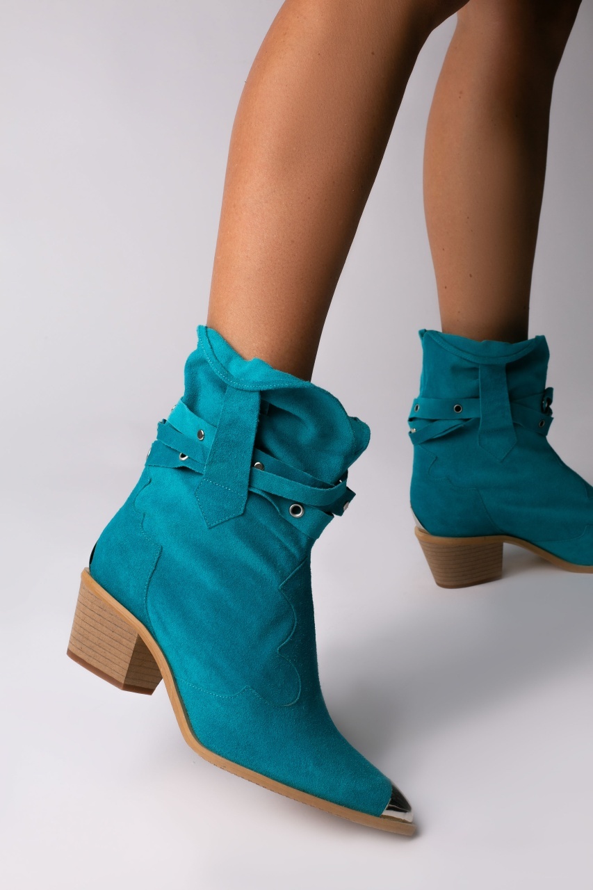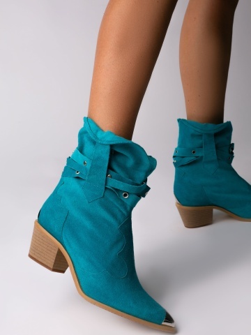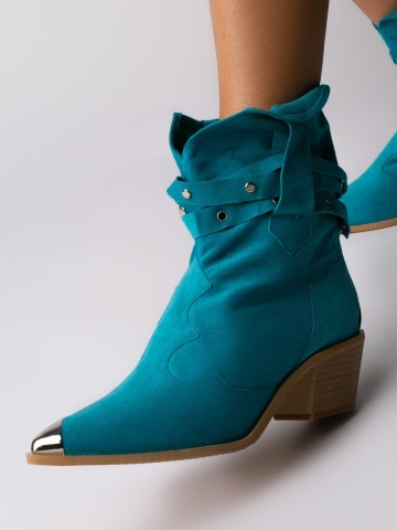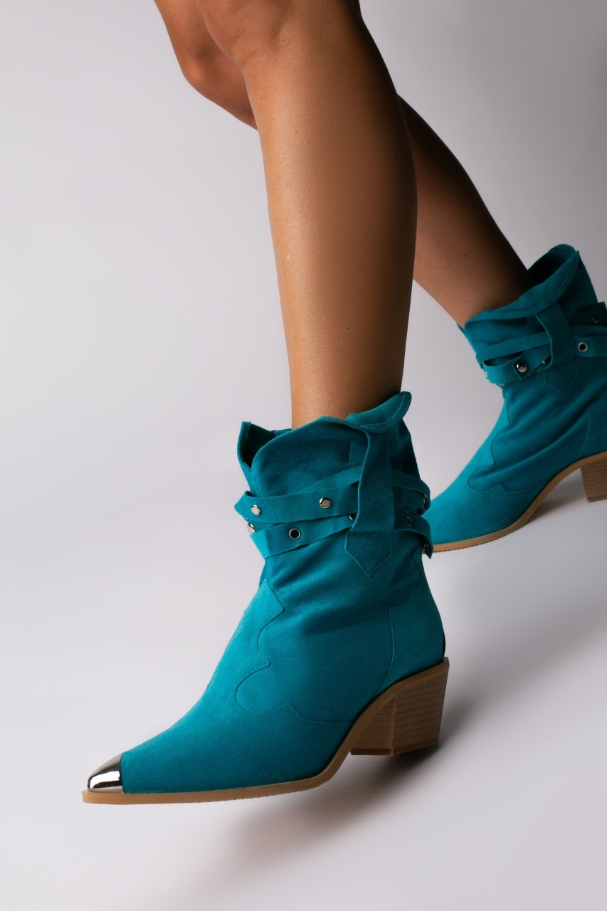 Ciocate Emira piele intoarsa turcoaz cu accesorii argintii