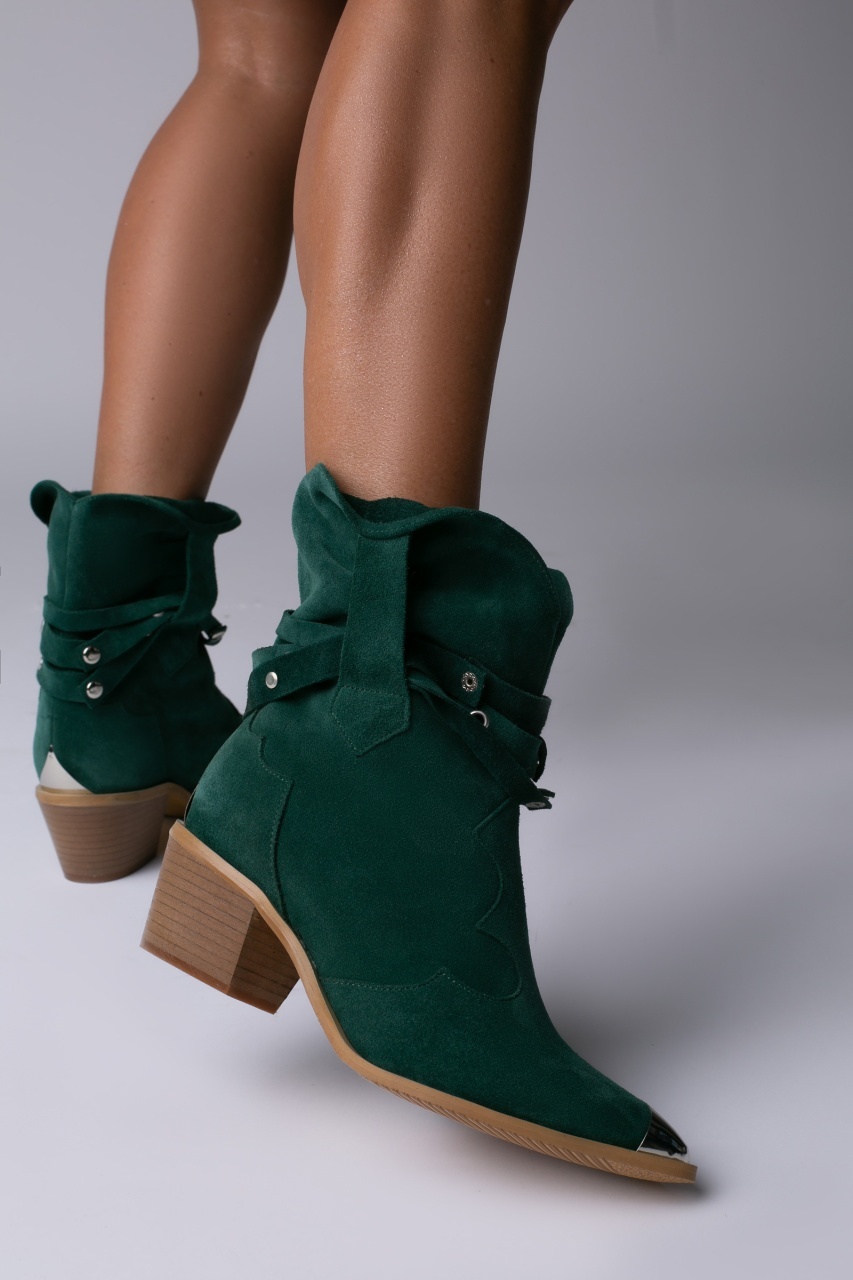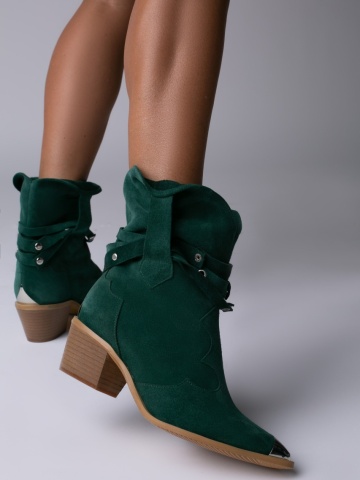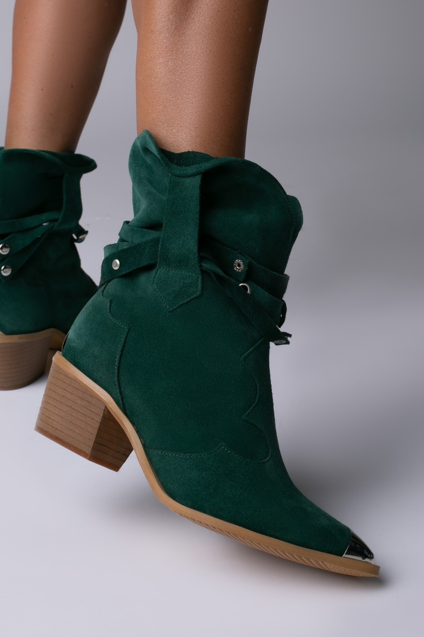 Ciocate Emira piele intoarsa verde inchis cu accesorii argintii si talpa bej