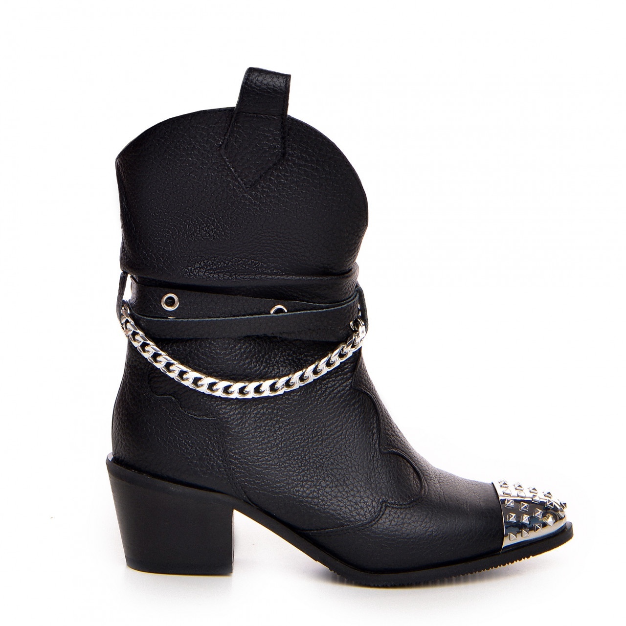 Ciocatele Metallic Monarch din piele bizonata neagra cu varf metalic mare ofera confort, executie impecabila si un design puternic si sofisticat.