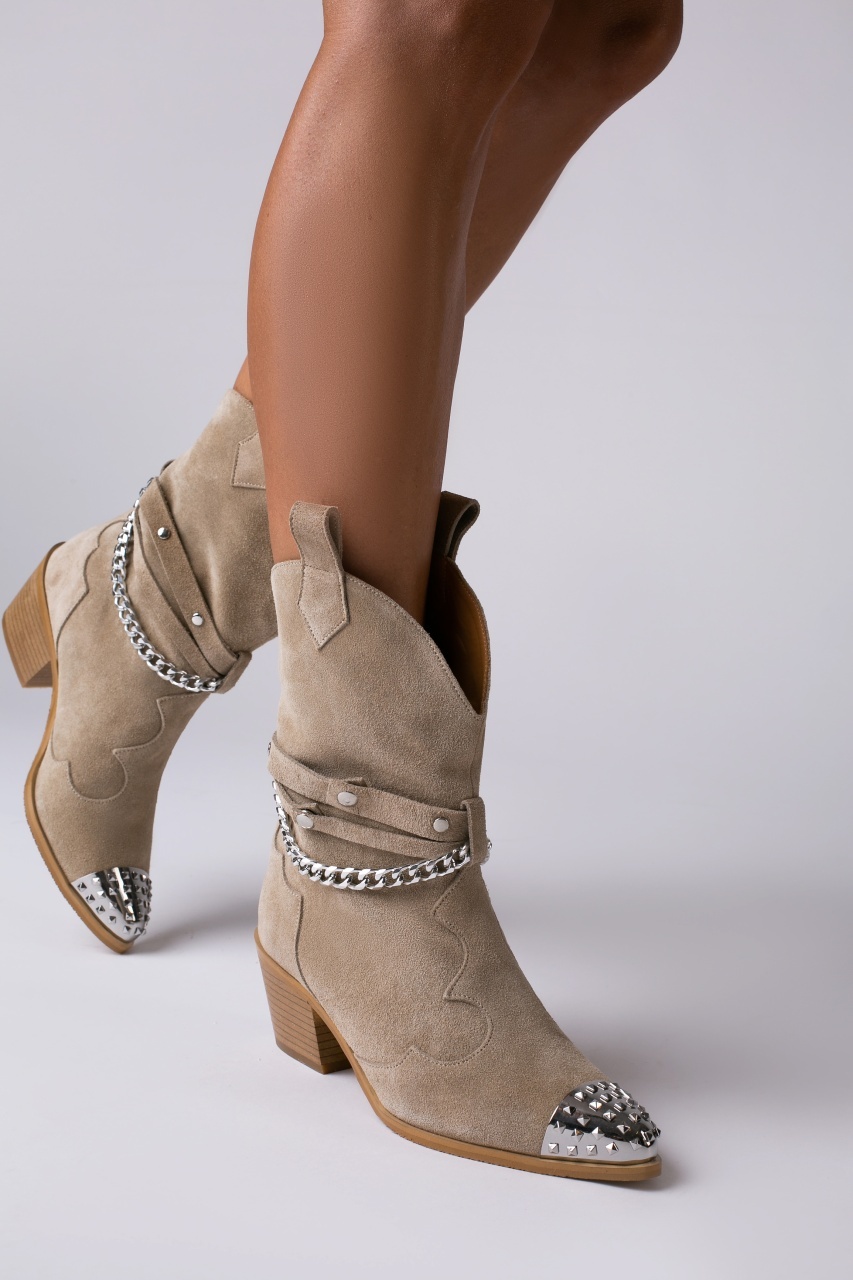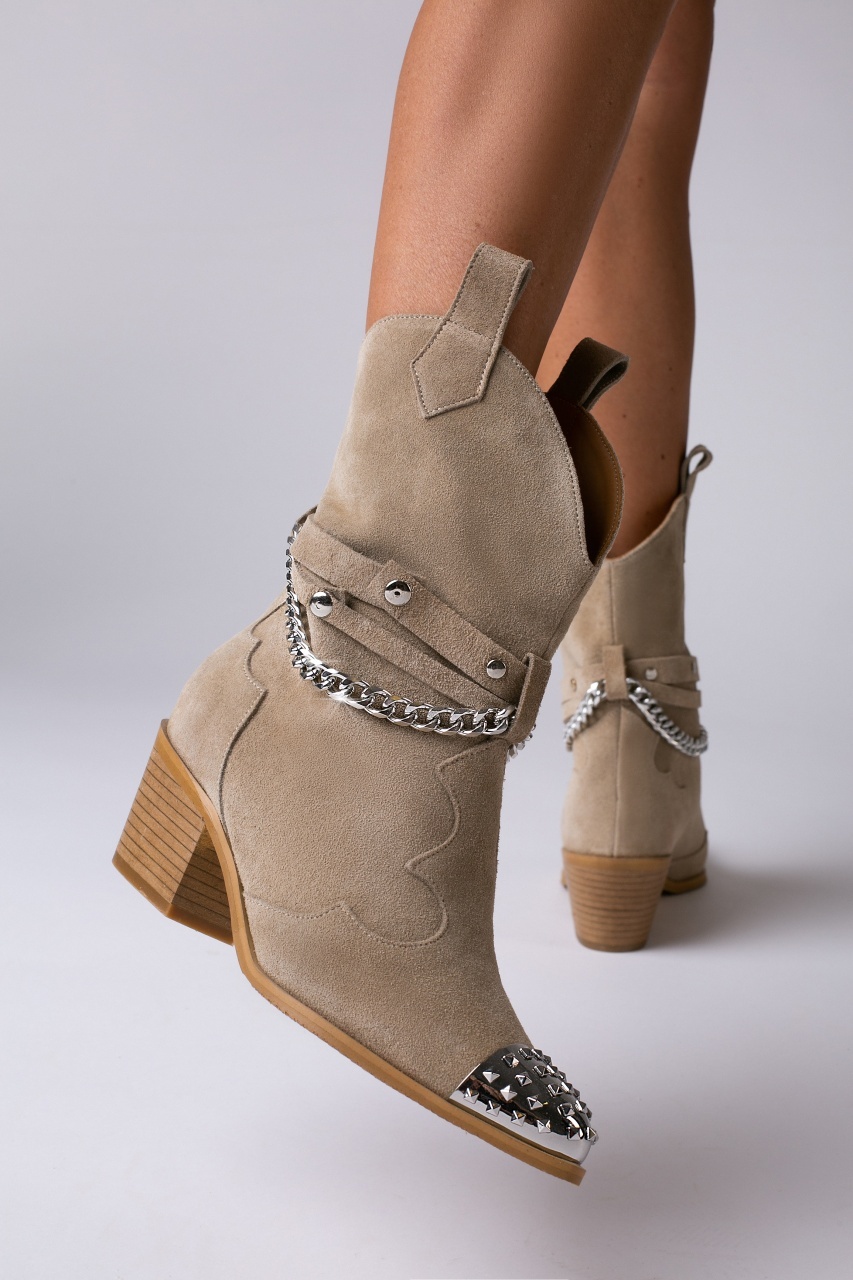Ciocatele Odyssey din piele intoarsa premium cu varf mare, tinte si talpa bej ofera confort, executie impecabila si un design sofisticat.