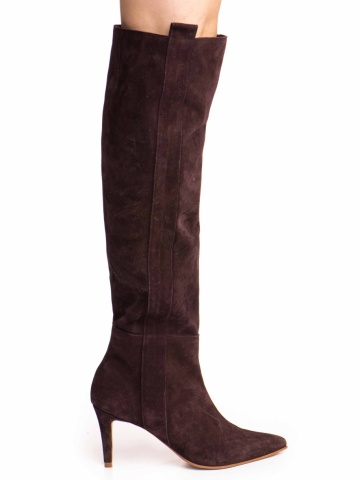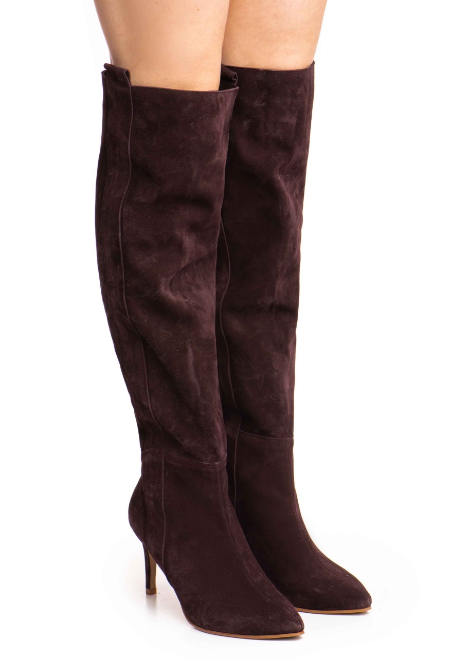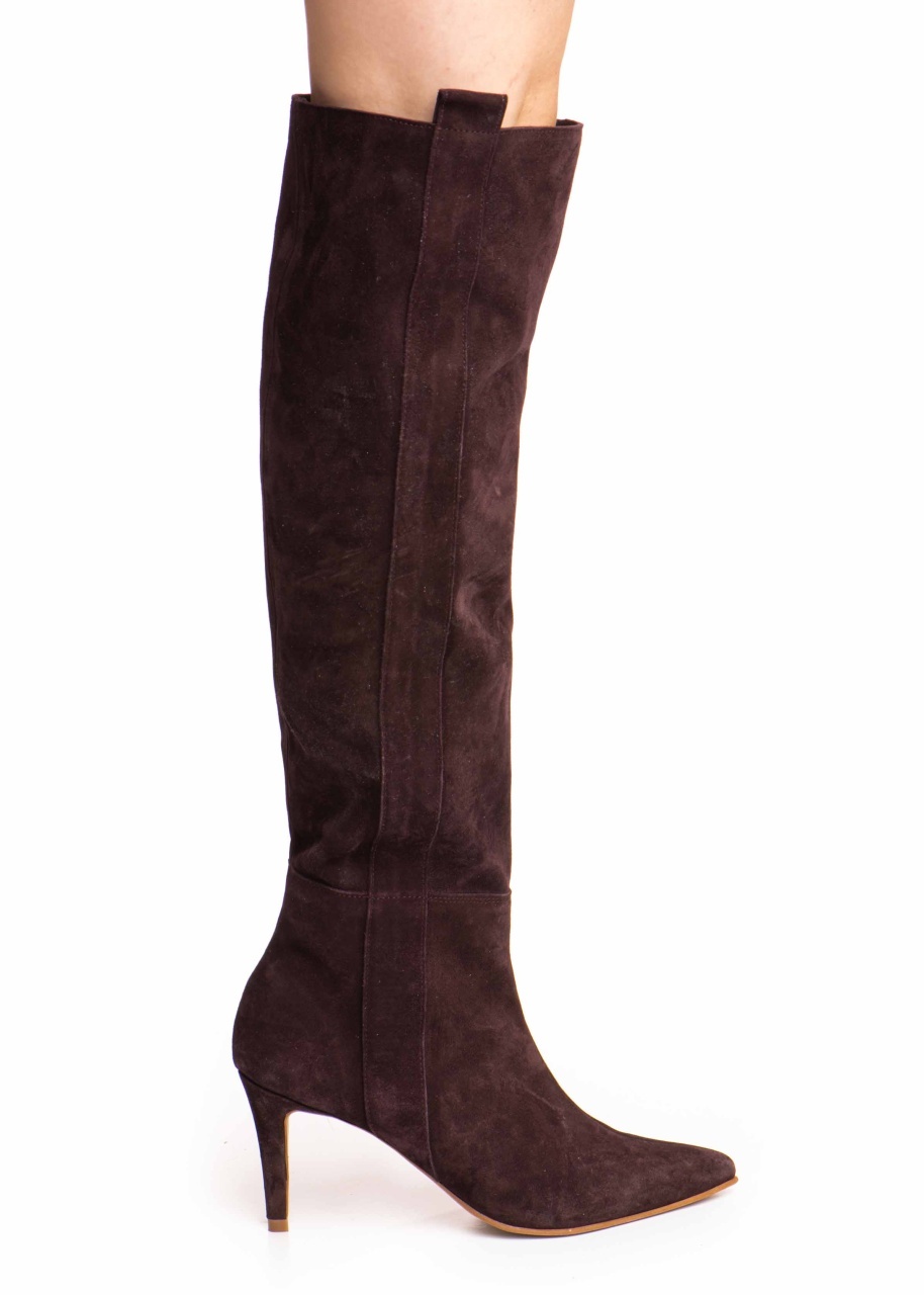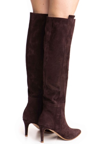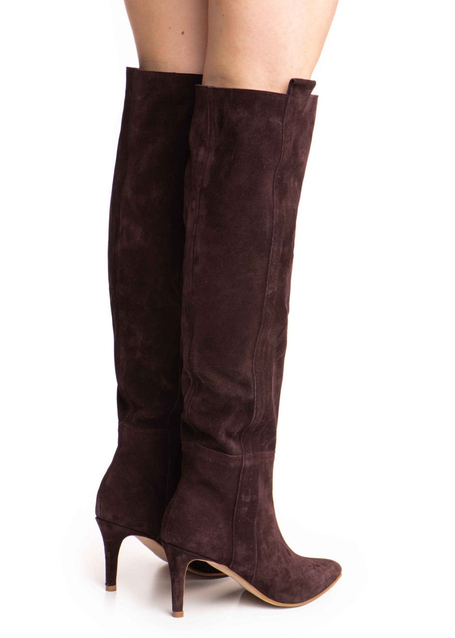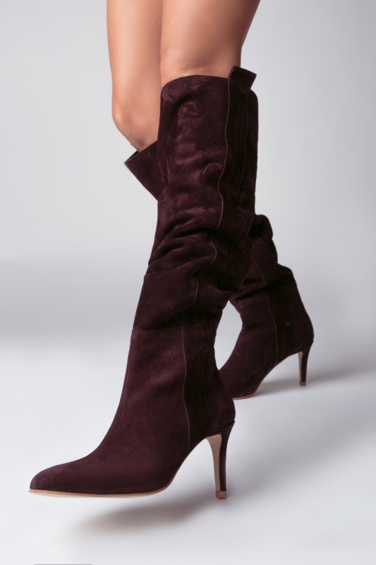 Cizmele Plum Dune Mirage din piele întoarsă mov închis adaugă grație și rafinament pasului tău.