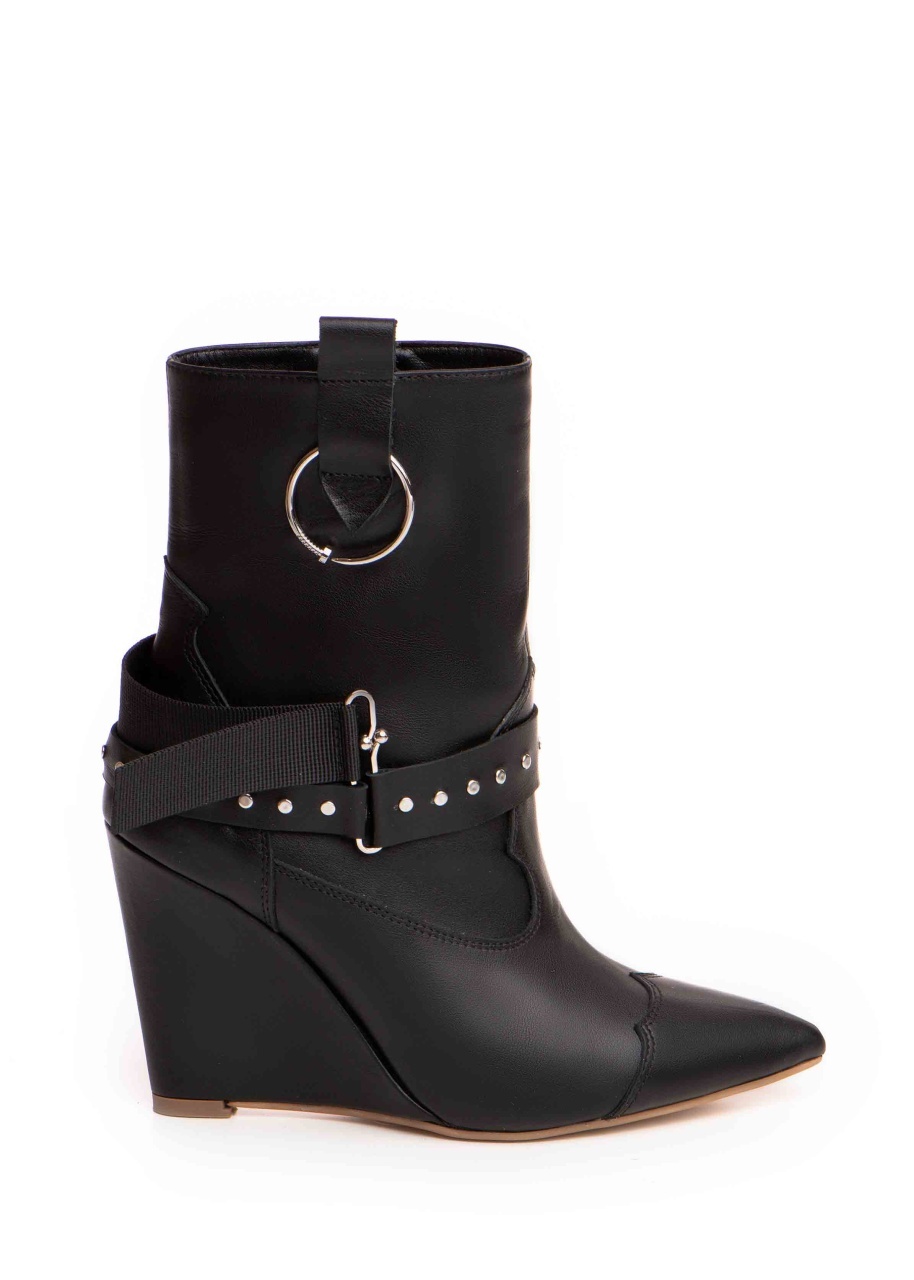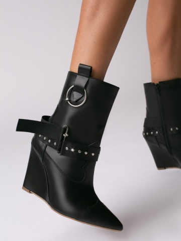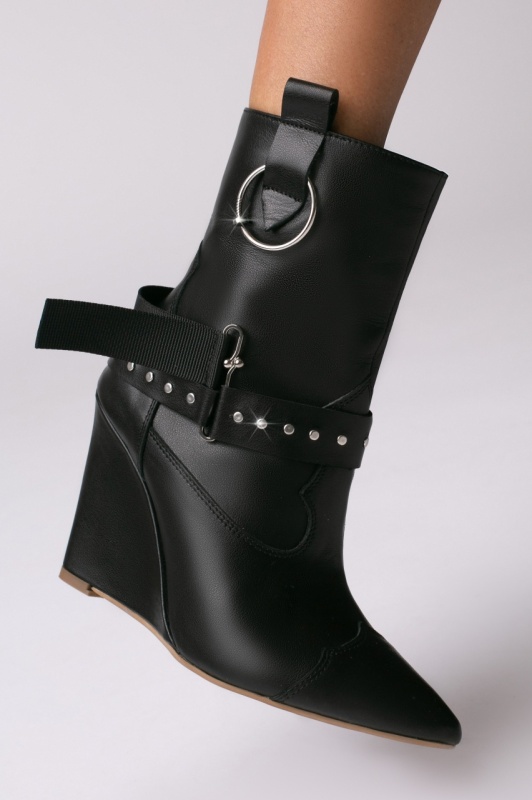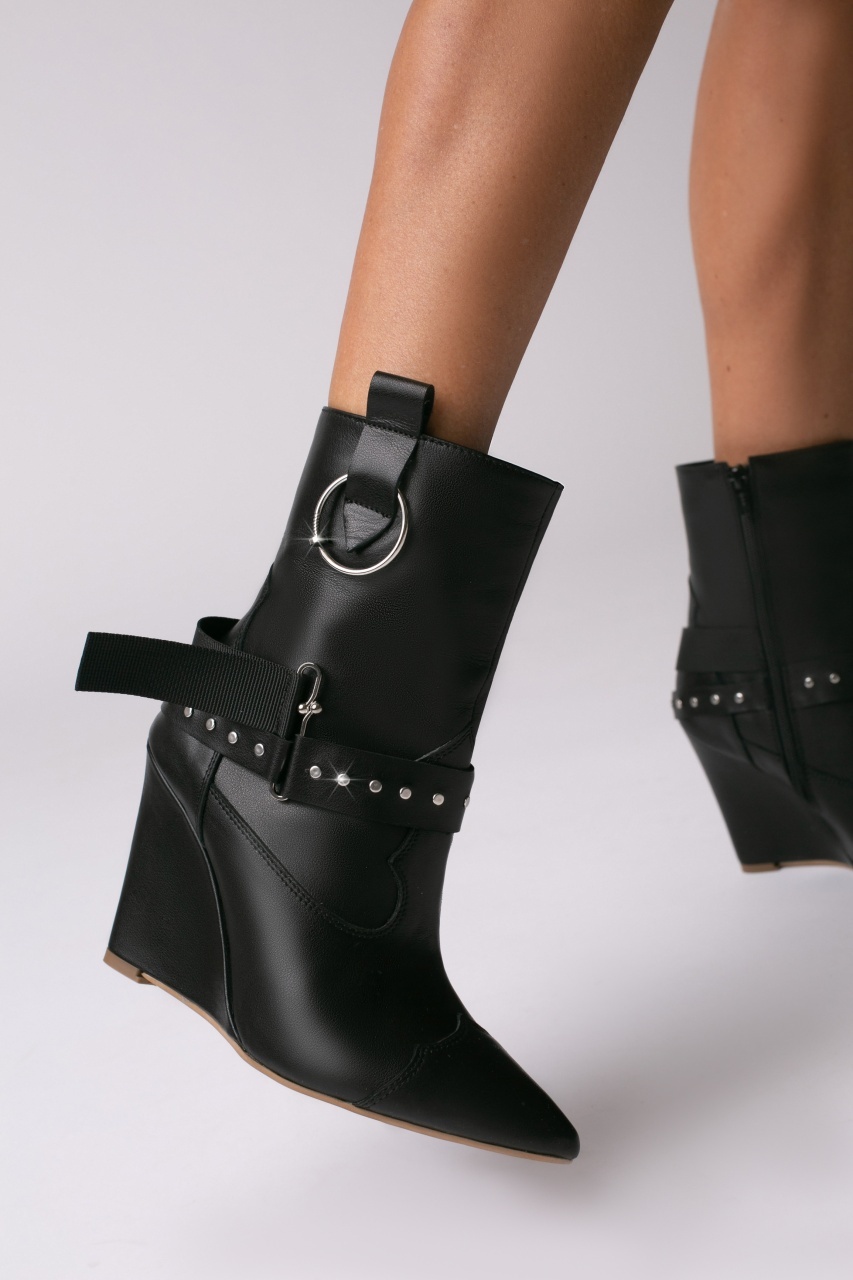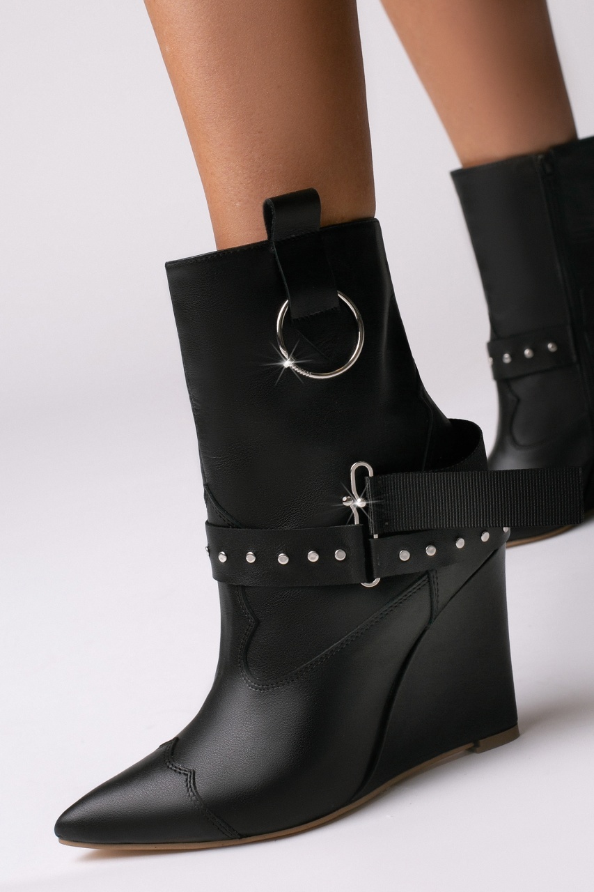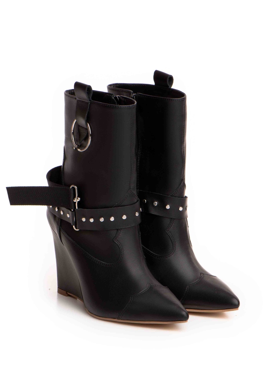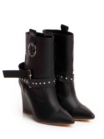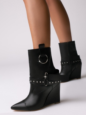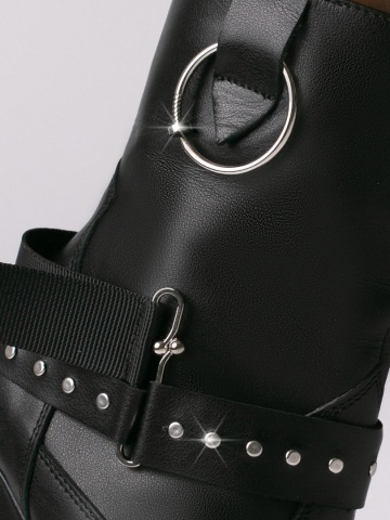 Cizme tip ciocate Elektra piele naturala, negru cu accesorii metalice argintii