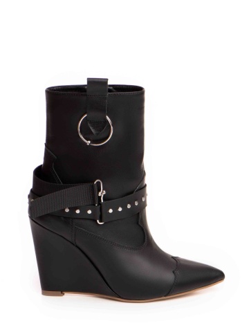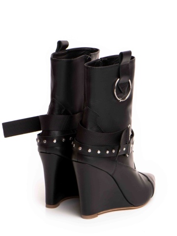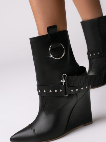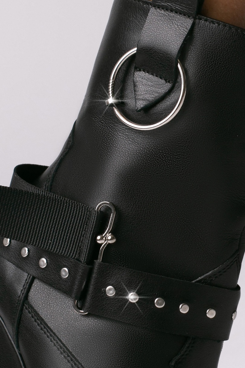 Cizmele Tip Ciocate Elektra din piele naturala neagra cu accesorii metalice argintii ofera confort, executie impecabila si un design sofisticat si indraznet.