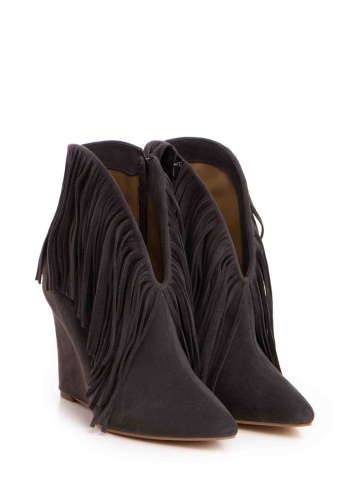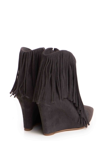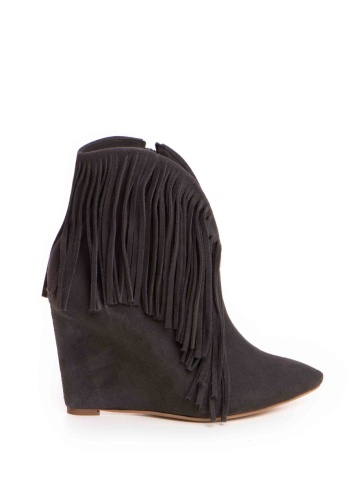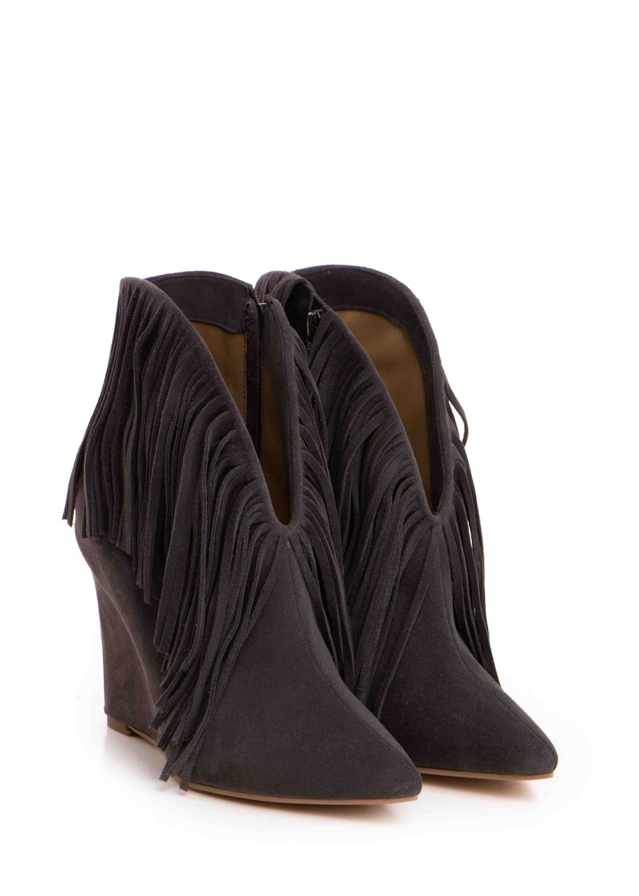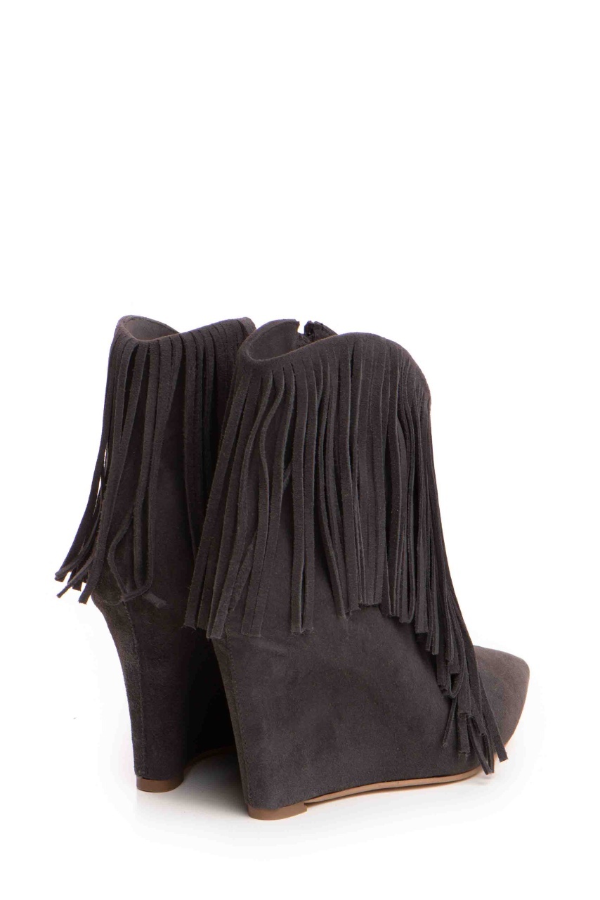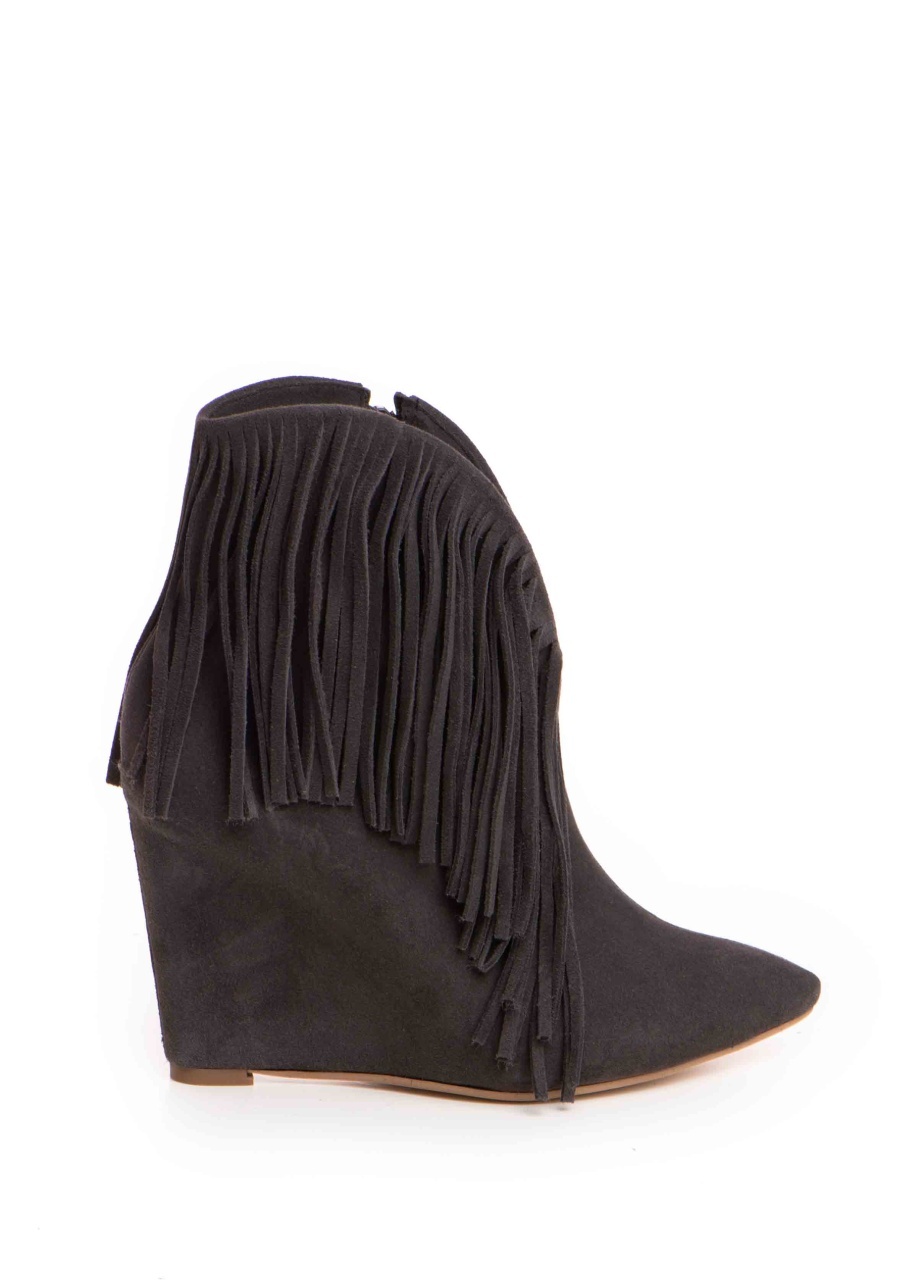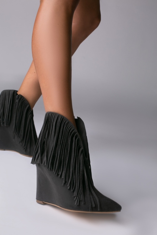 Cizme tip ciocate Nemesis piele intoarsa gri inchis cu franjuri