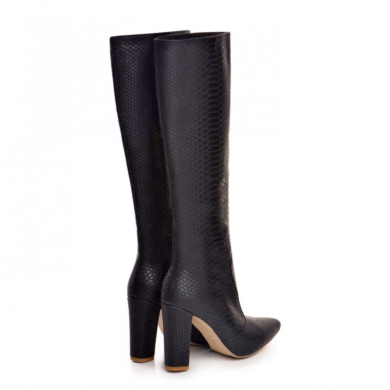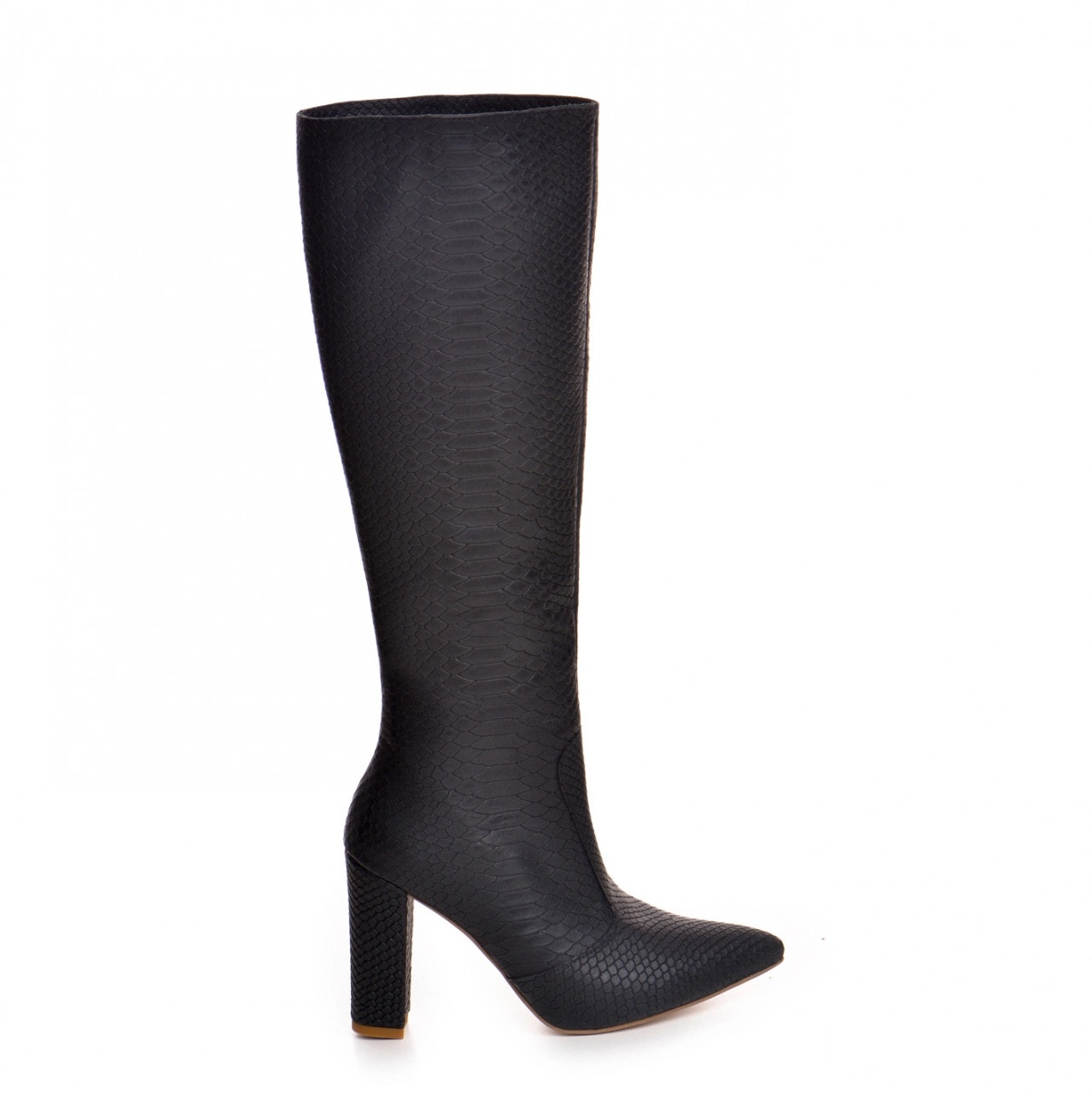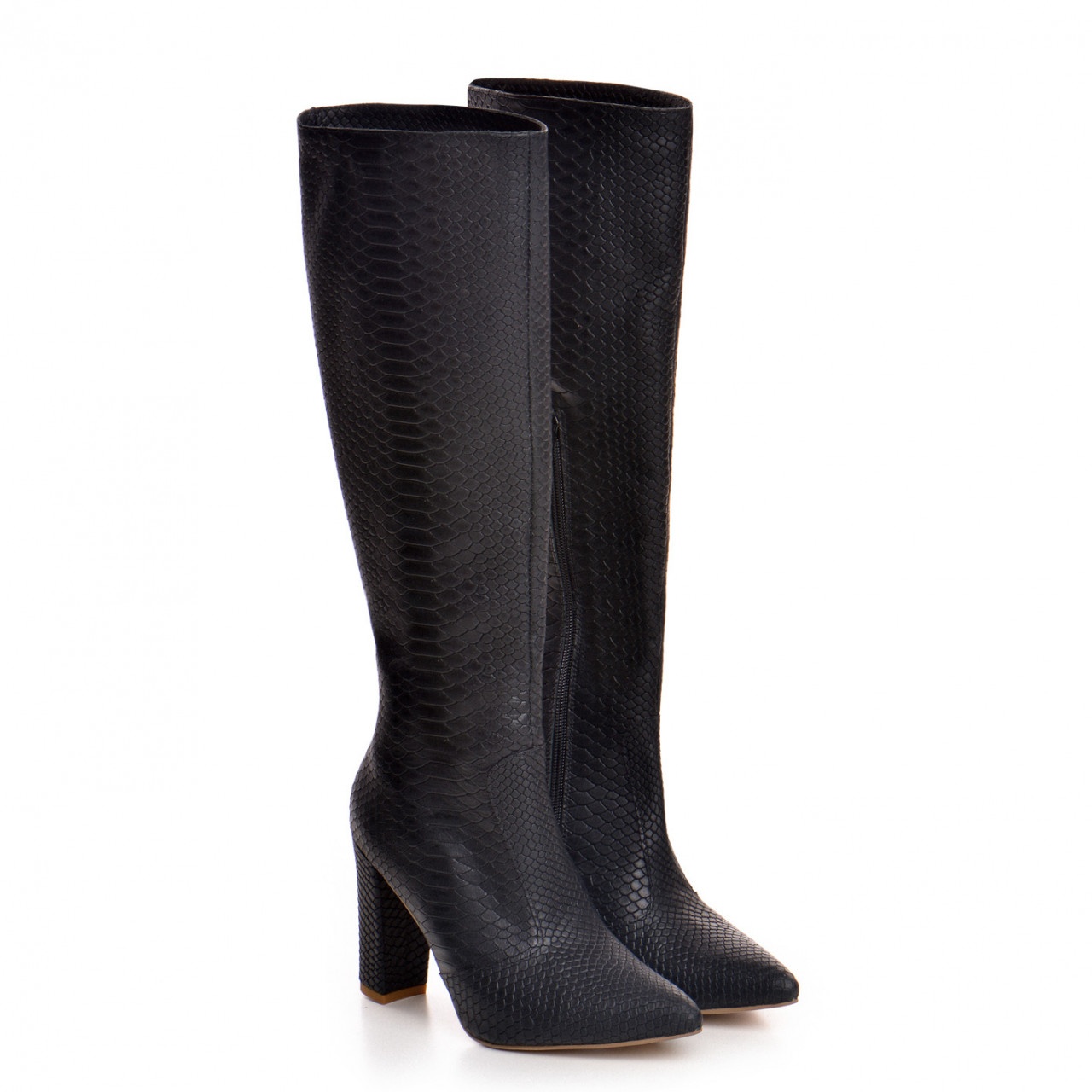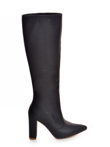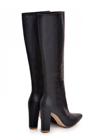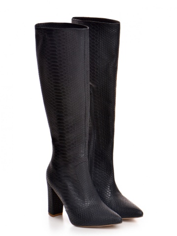 Cizme Valerie cu toc gros, imprimeu sarpe, negre