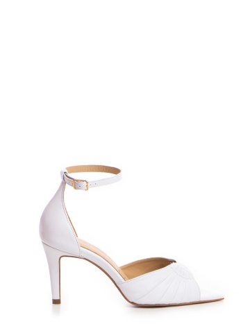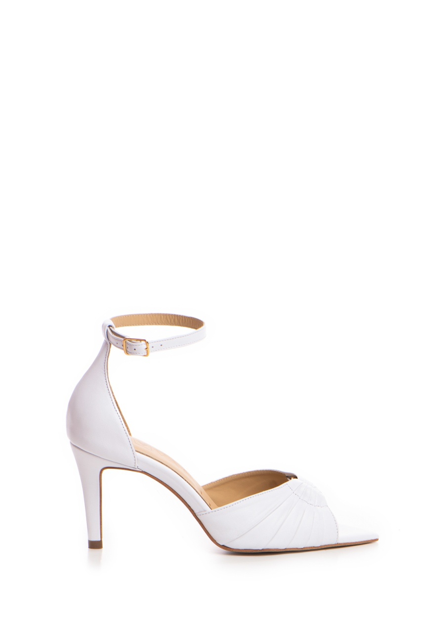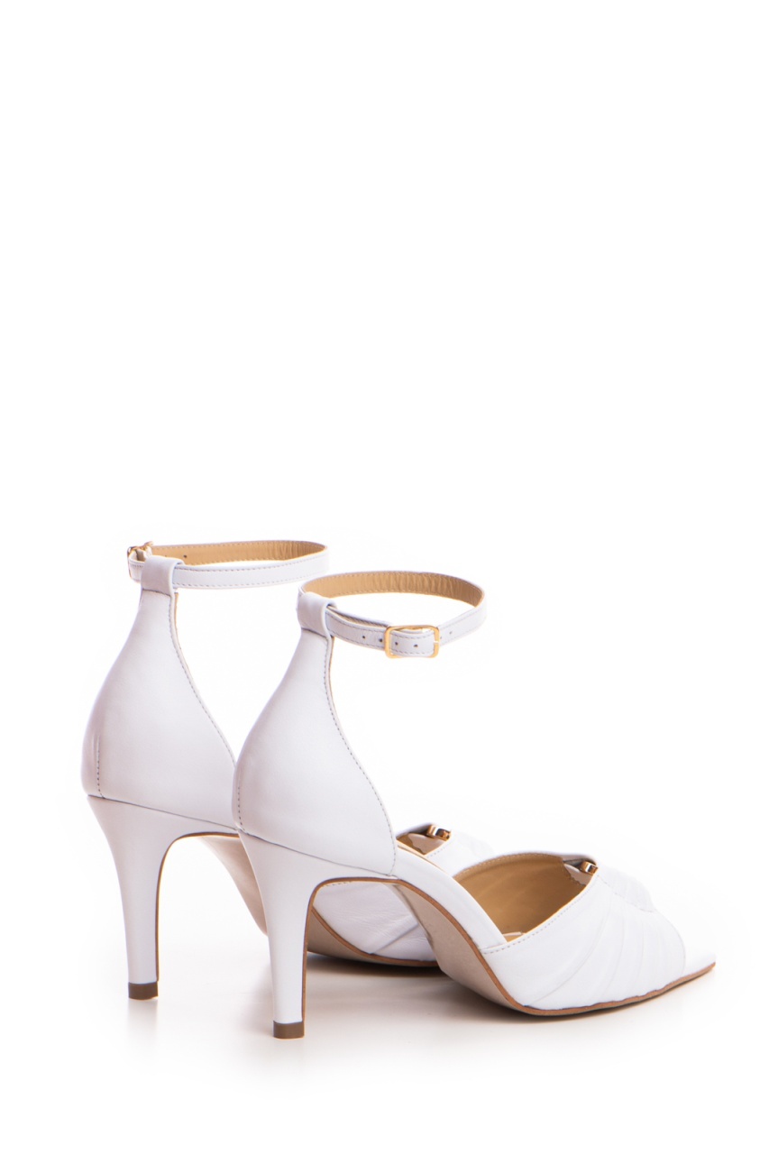 Pantofi Lilith piele naturala alba , cu toc subtire mic