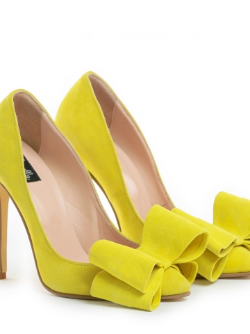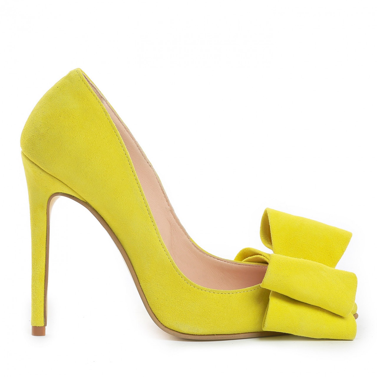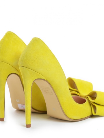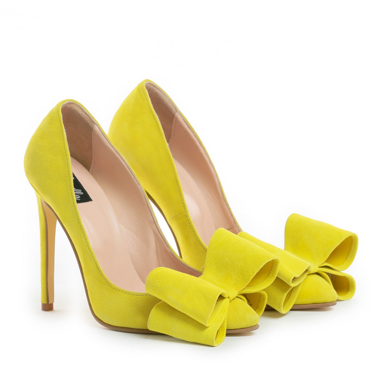 Pantofi Stiletto cu toc Catrina din piele intoarsa Yellow