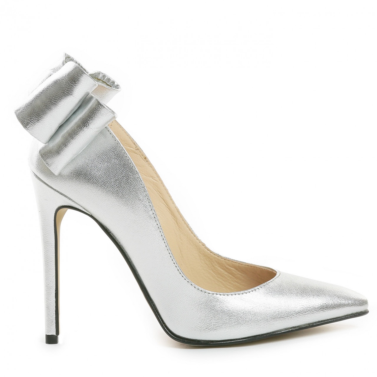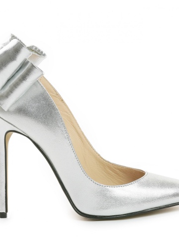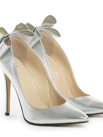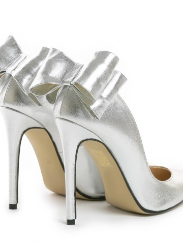 Pantofi Stiletto cu toc subtire Cleopatra, piele naturala, argintii
