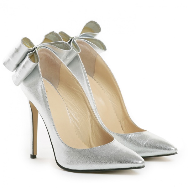 Pantofi stiletto Cleopatra argintii pentru mirese ce vor rafinament, confort si stralucire absoluta