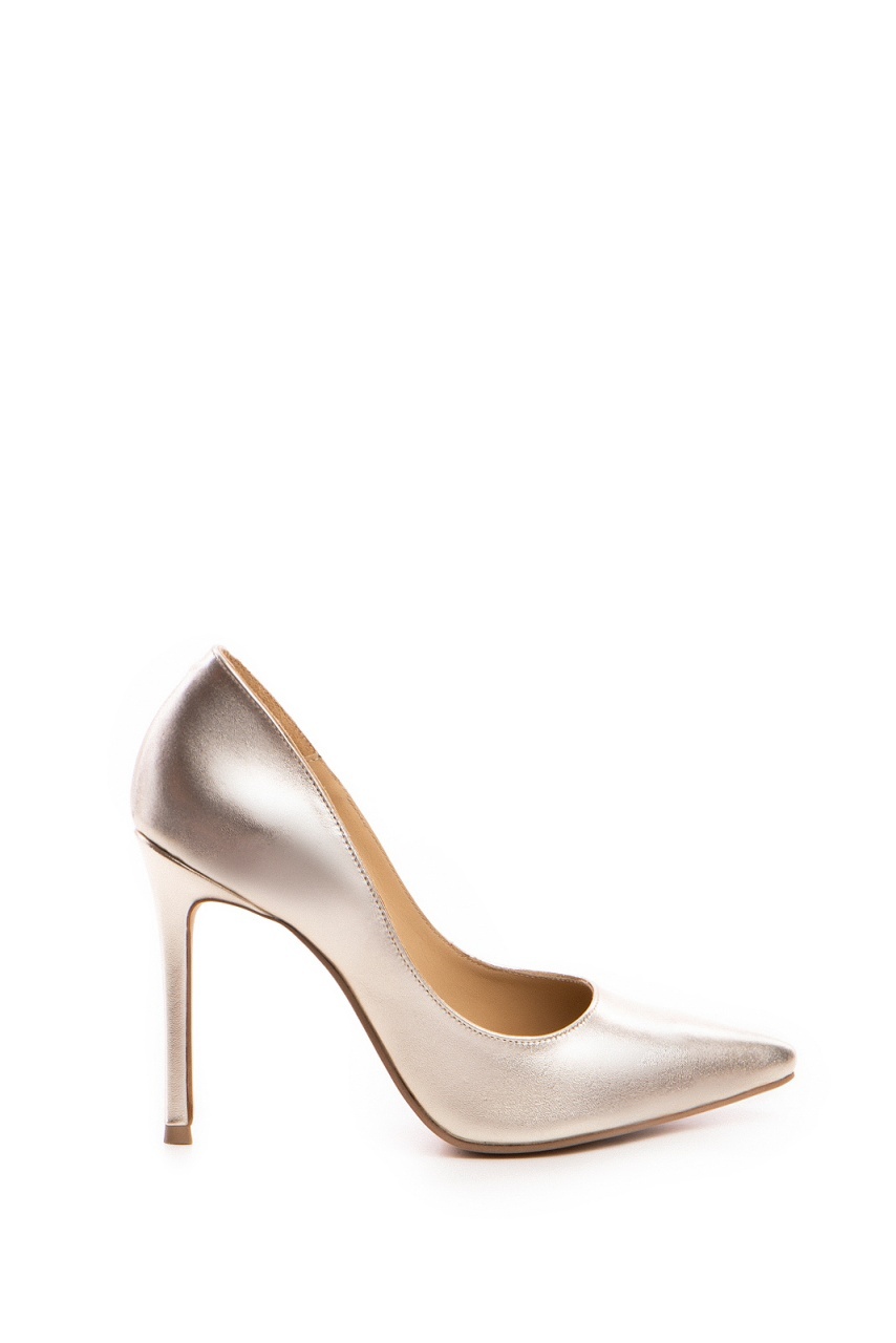 Pantofi Stiletto cu toc subtire Corina, piele naturala, auriu