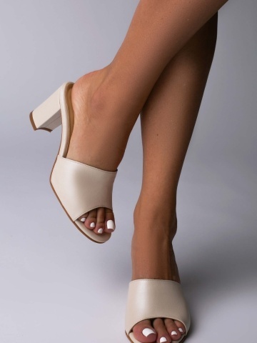 Saboti Elise cu toc mic gros, piele naturala ivoire