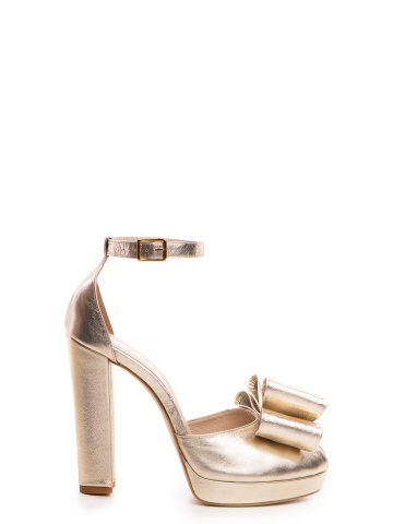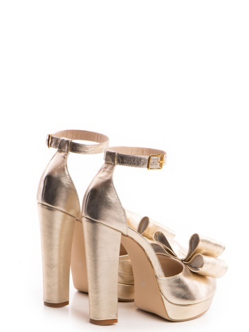 Sandale aurii cu fundita din piele naturala cu executie impecabila si senzatie de eleganta rafinata si jucausa