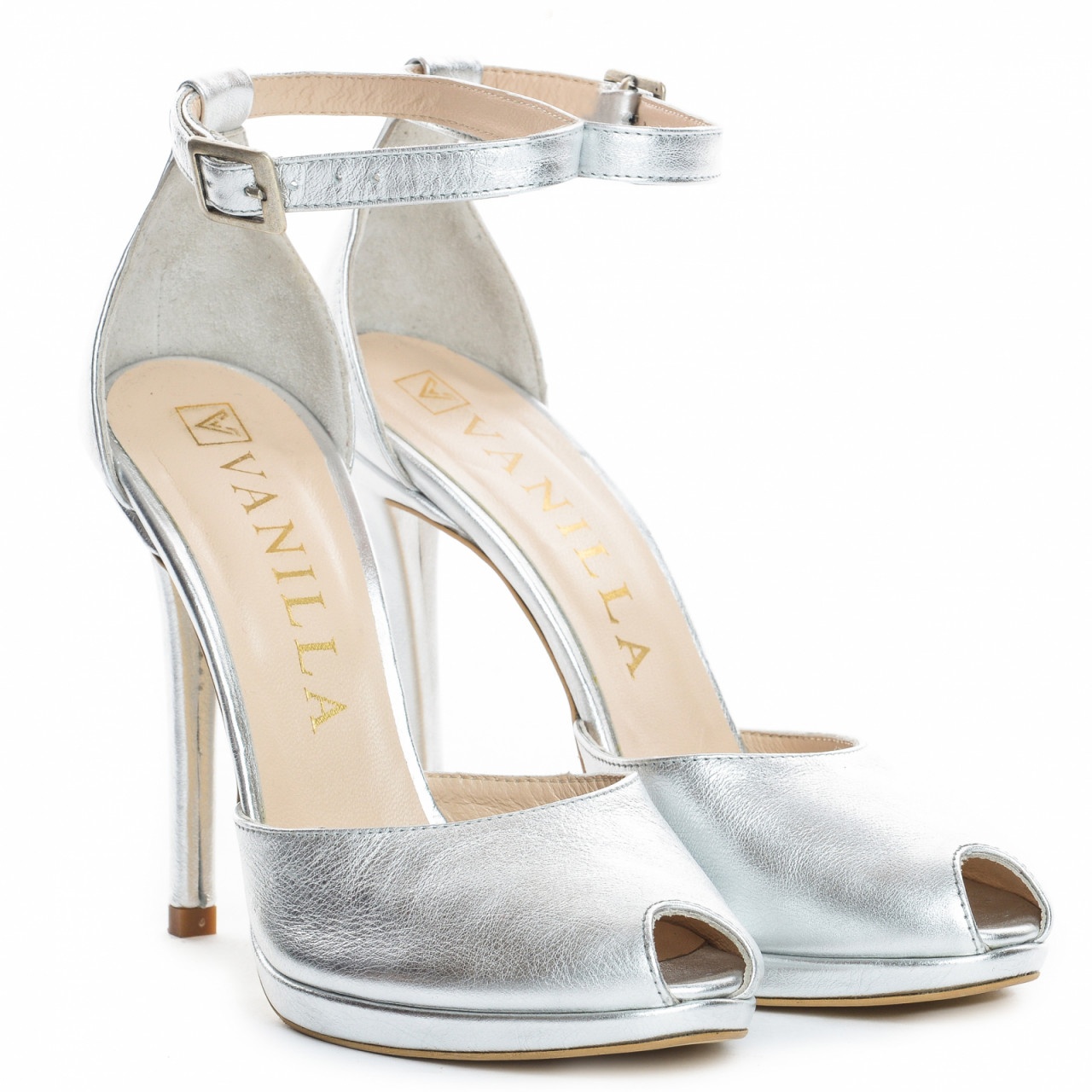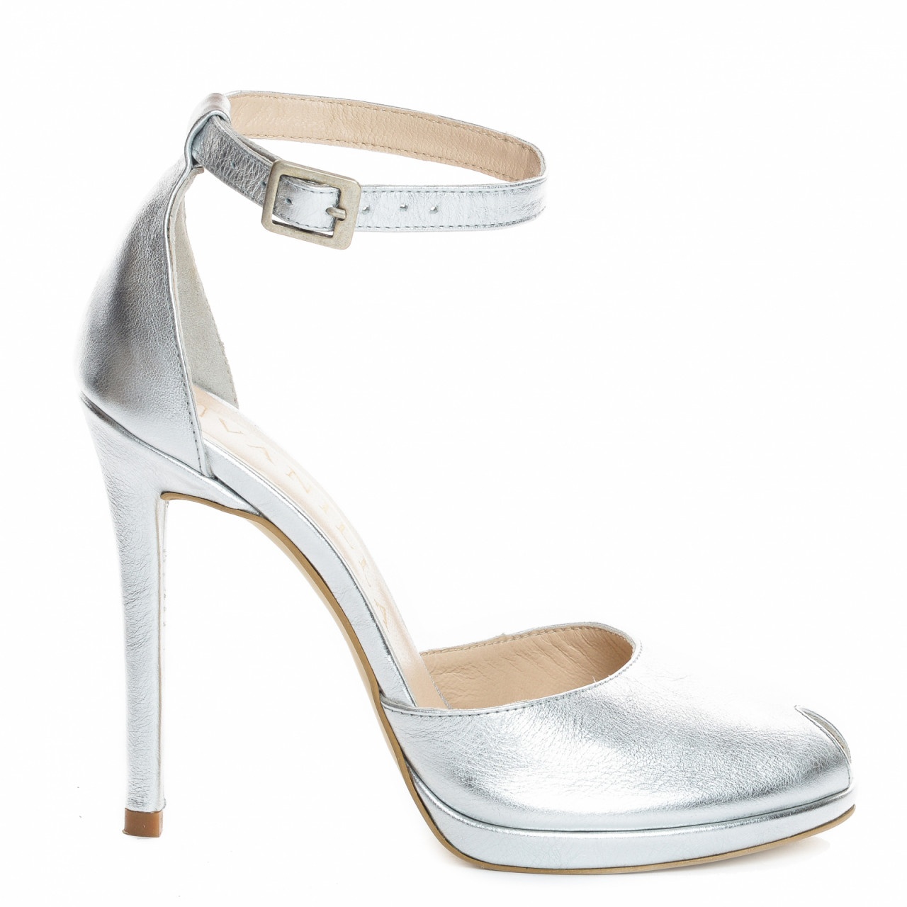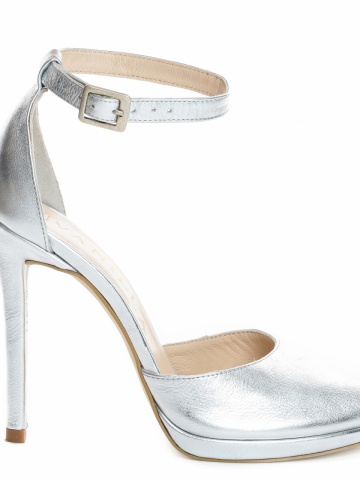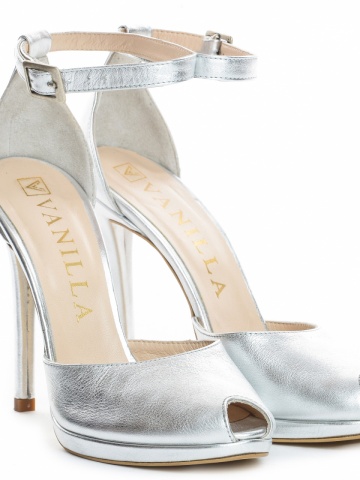 Sandale Beijing cu toc subtire, piele naturala, argintii