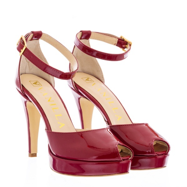 Sandale Beijing din piele lacuita grena Toc Mic
