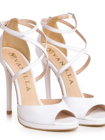 Sandale Bogota Mistic cu toc subtire, piele naturala, albe