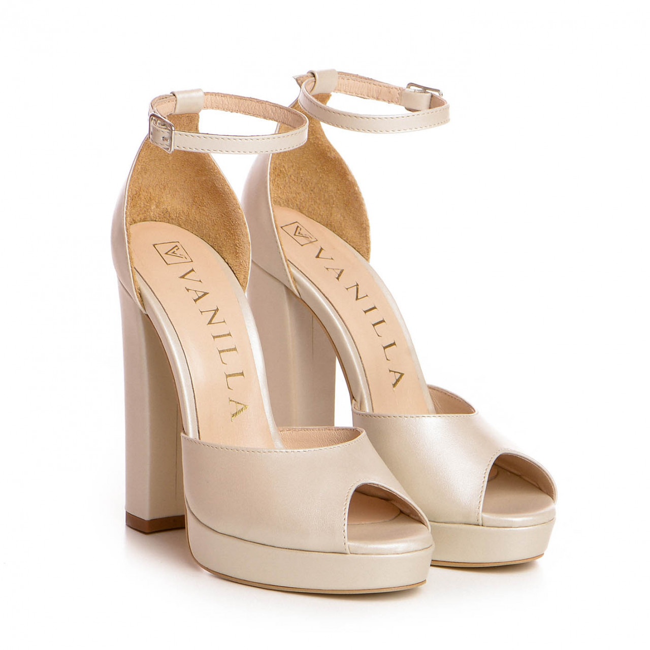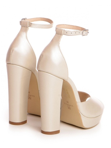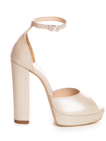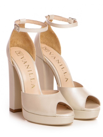 Sandale Bolivia cu toc gros, piele naturala, ivoire